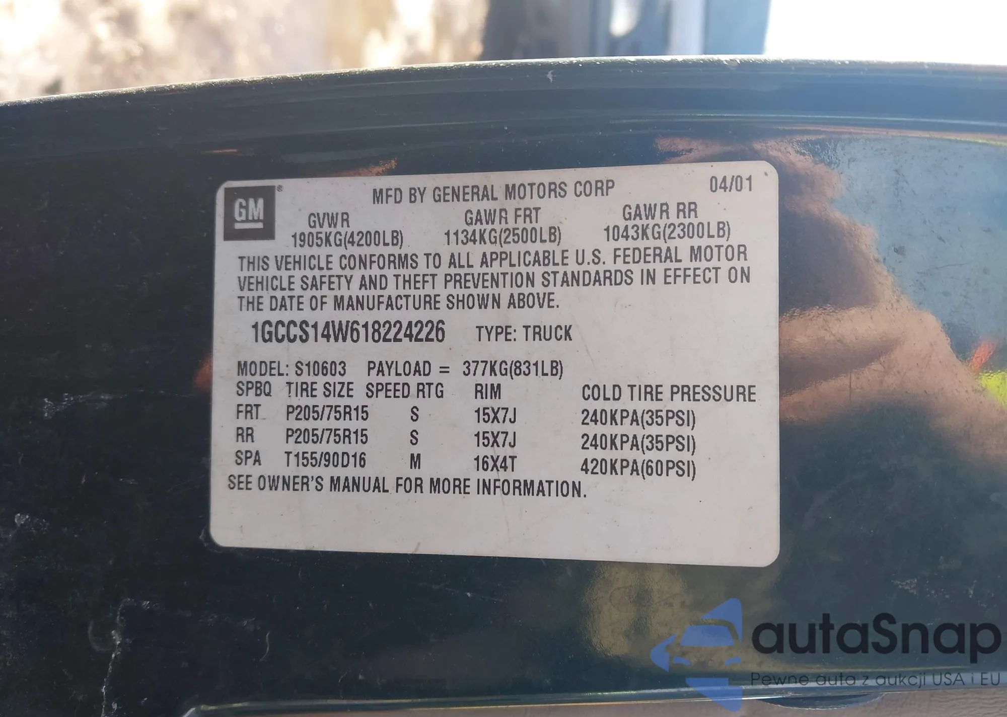 VIN: 1GCCS14W618224226