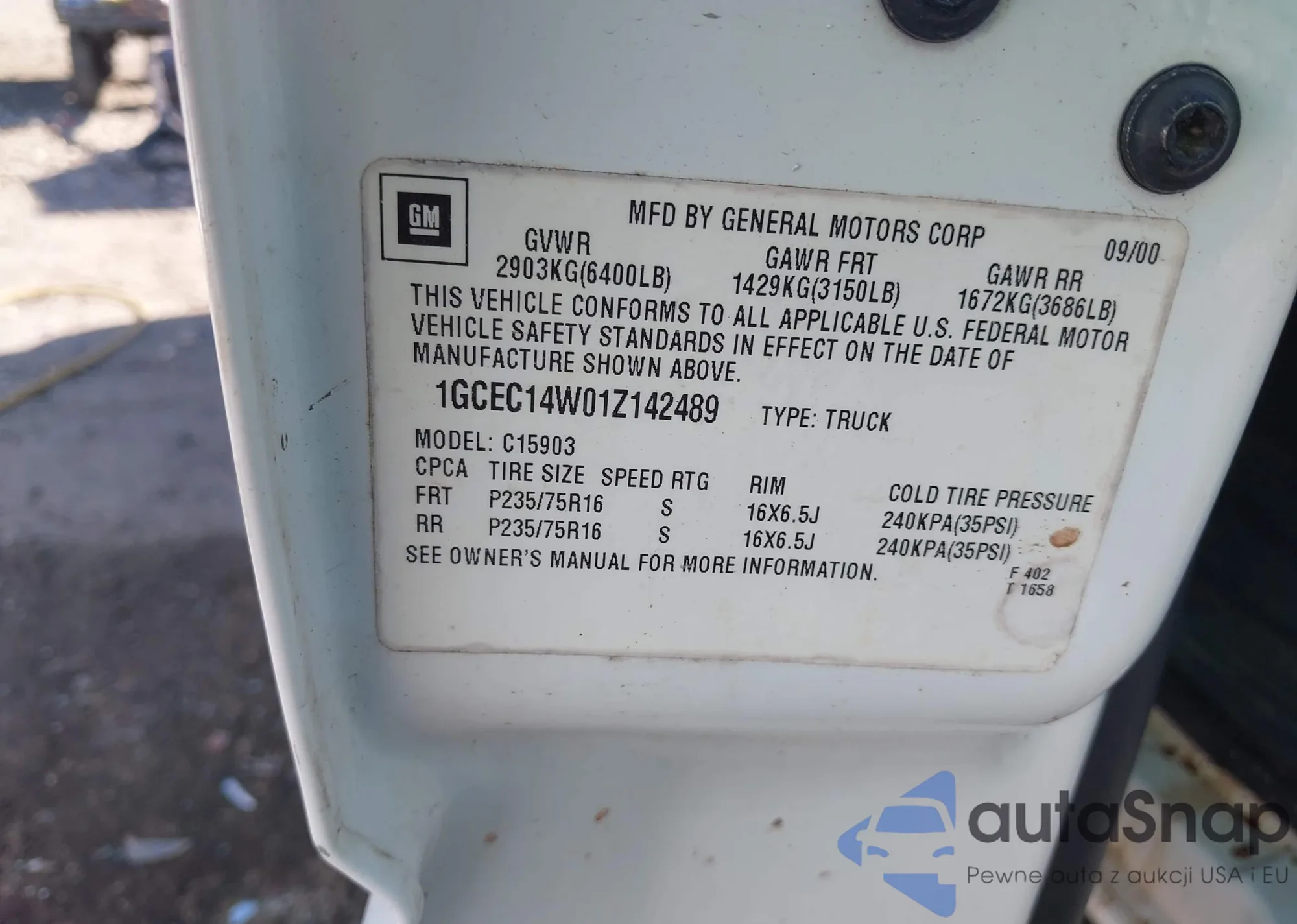 • VIN: 1GCEC14W01Z142489
