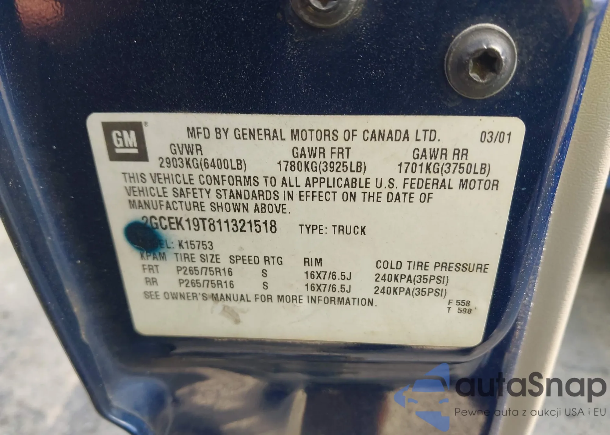 VIN: 2GCEK19T811321518