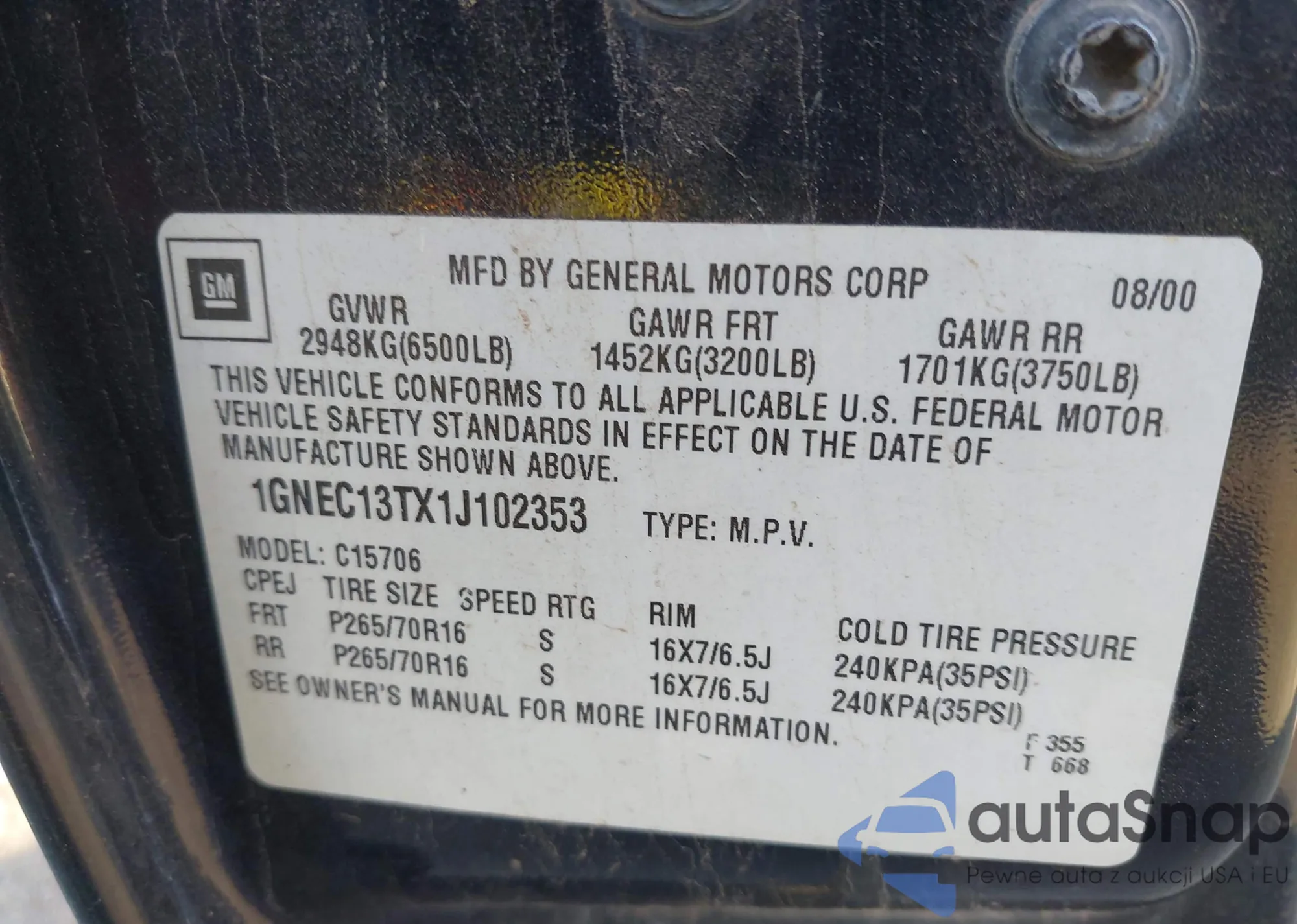 VIN: 1GNEC13TX1J102353
