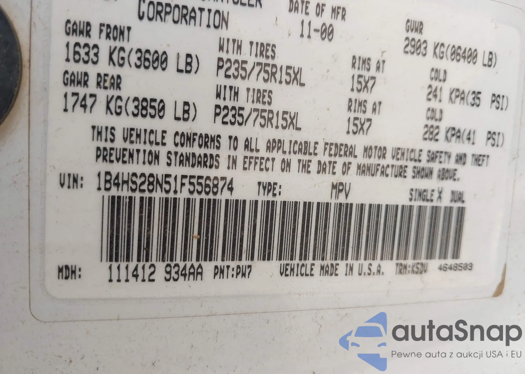 • VIN: 1B4HS28N51F556874