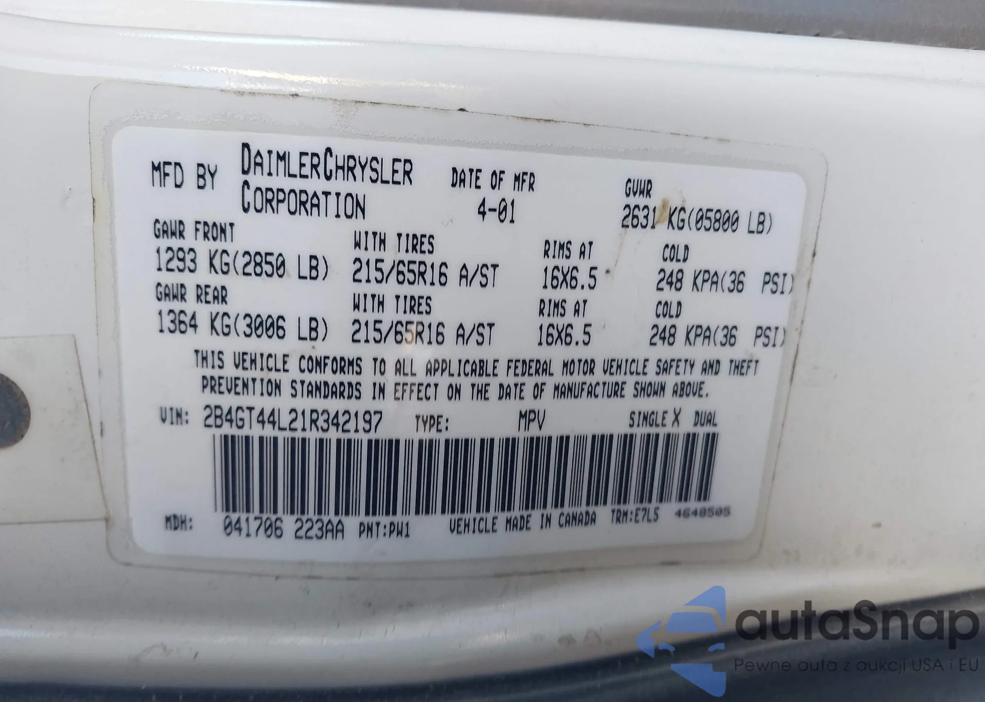 VIN: 2B4GT44L21R342197