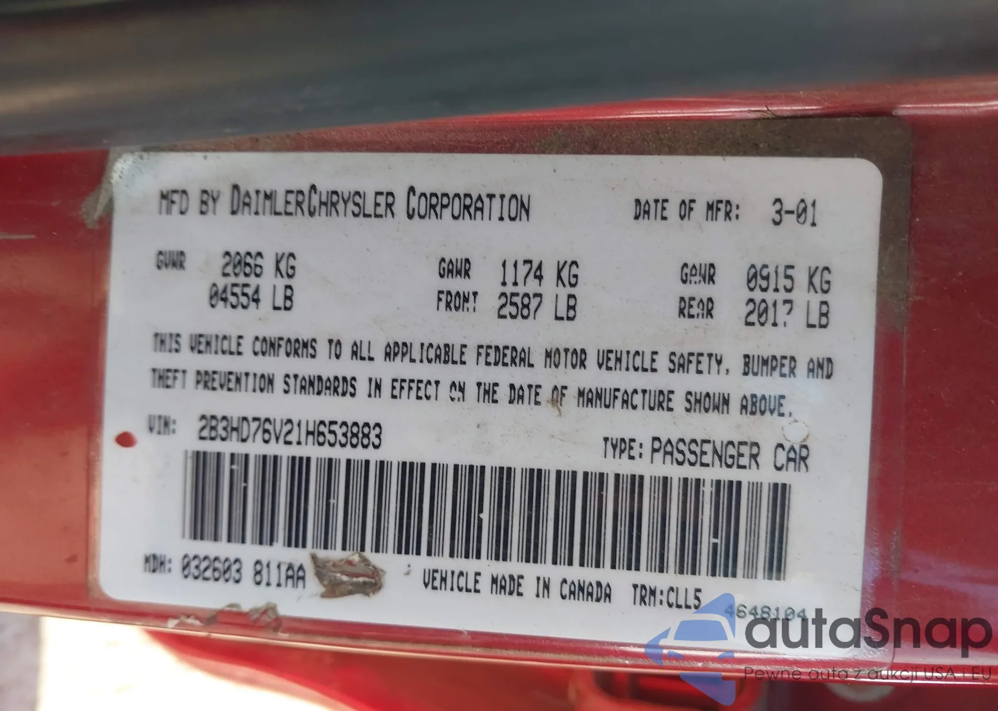 VIN: 2B3HD76V21H653883