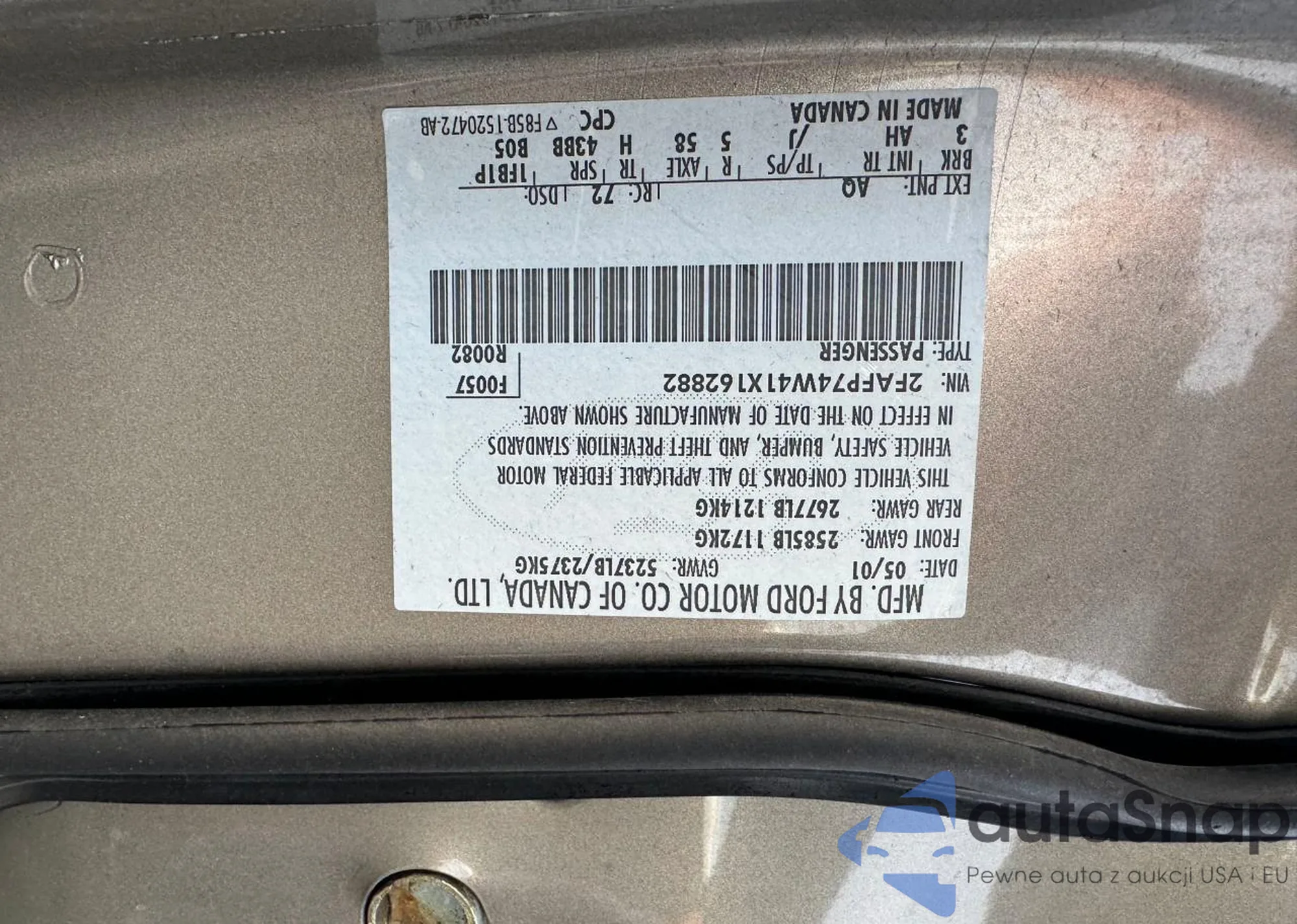 VIN: 2FAFP74W41X162882