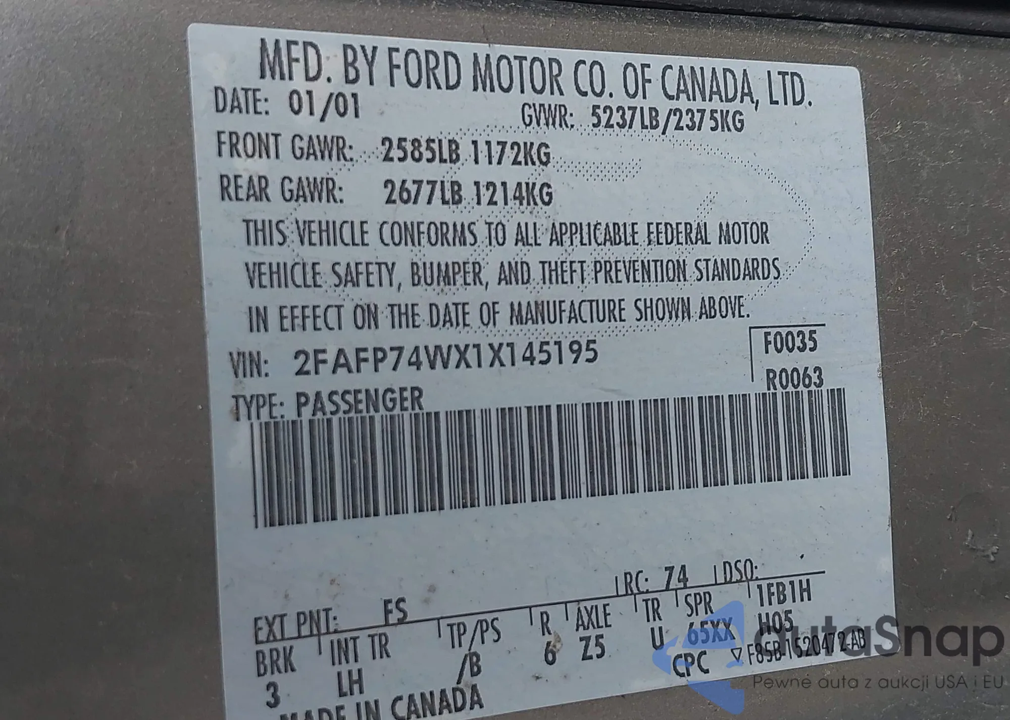 VIN: 2FAFP74WX1X145195