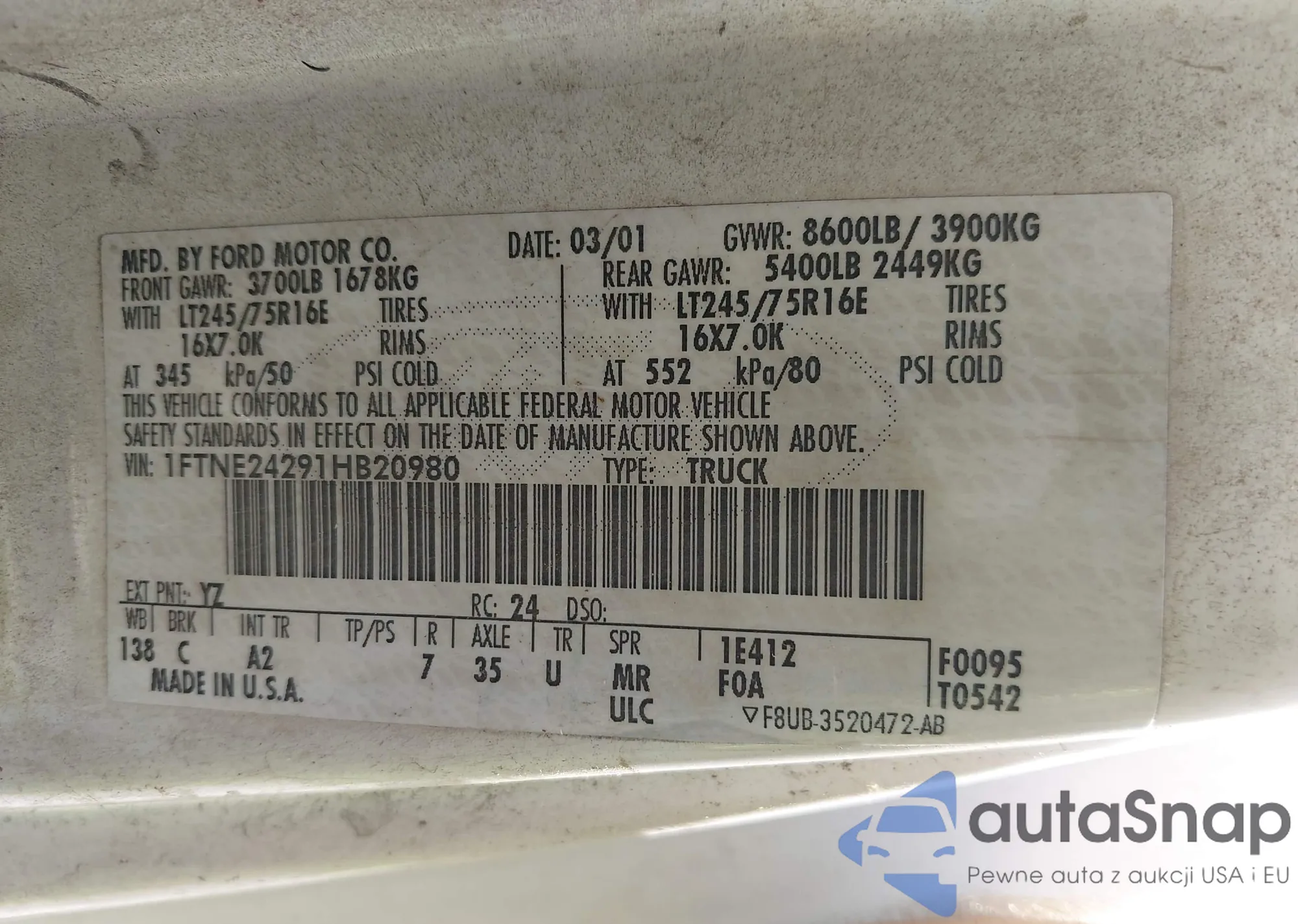 VIN: 1FTNE24291HB20980