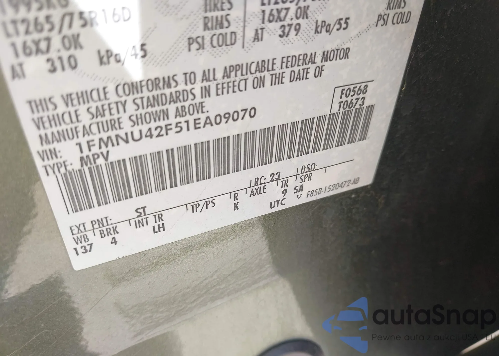 The car Ford Excursion 2001 (VIN 1FMNU42F51EA09070) is sold by an unverified seller. We recommend checking the Carfax report and confirming registration possibilities before purchase.