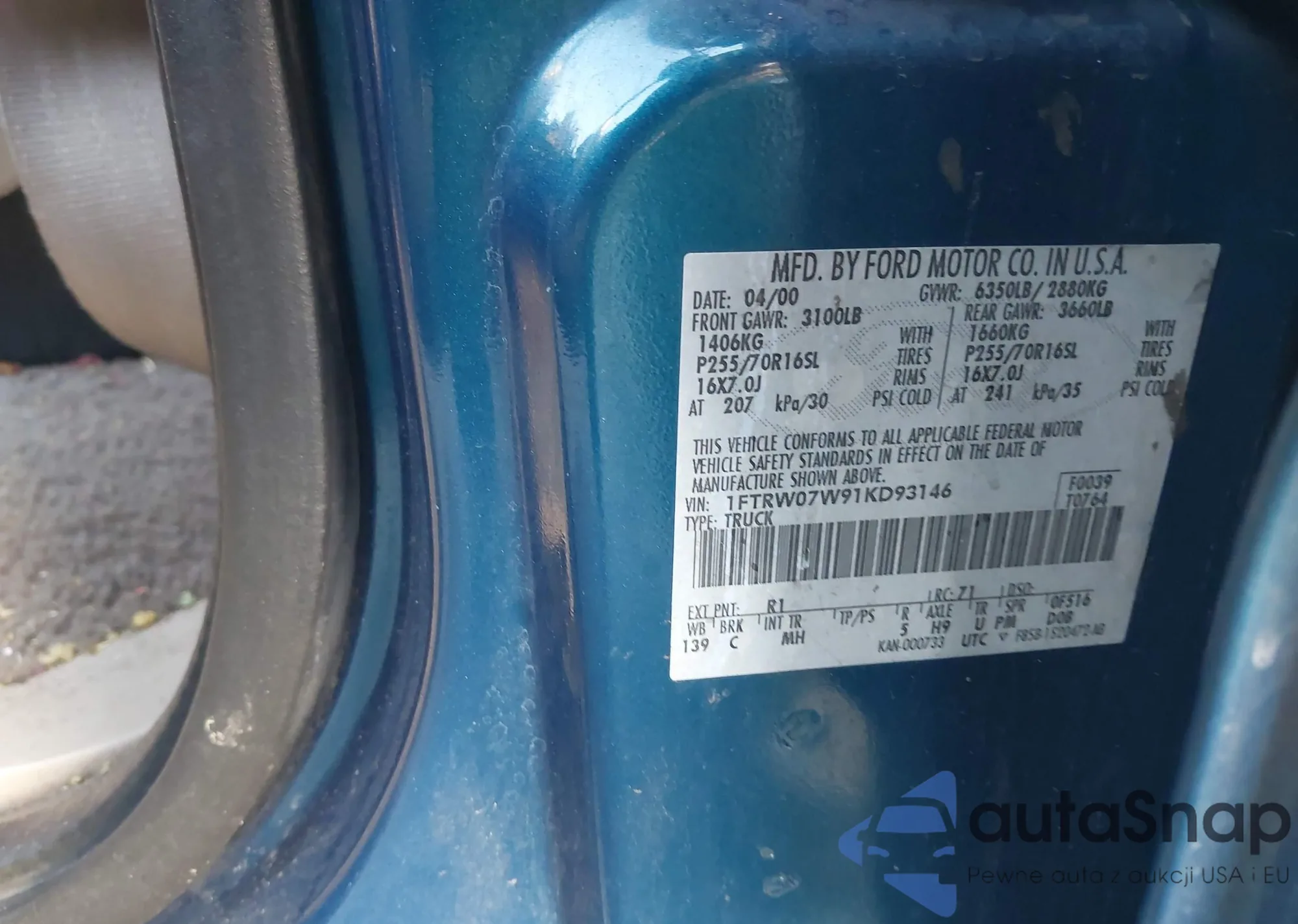 VIN: 1FTRW07W91KD93146