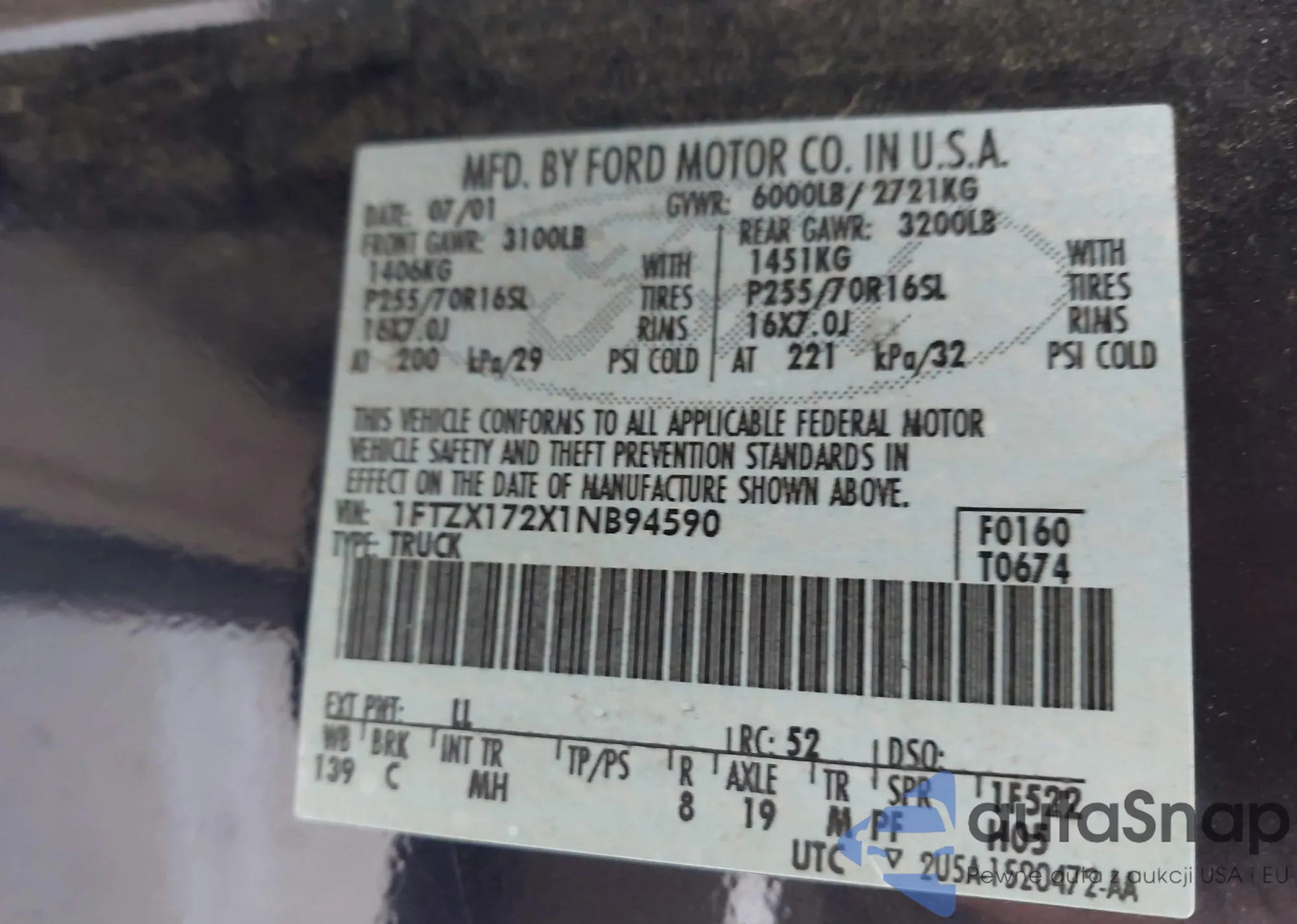 VIN: 1FTZX172X1NB94590