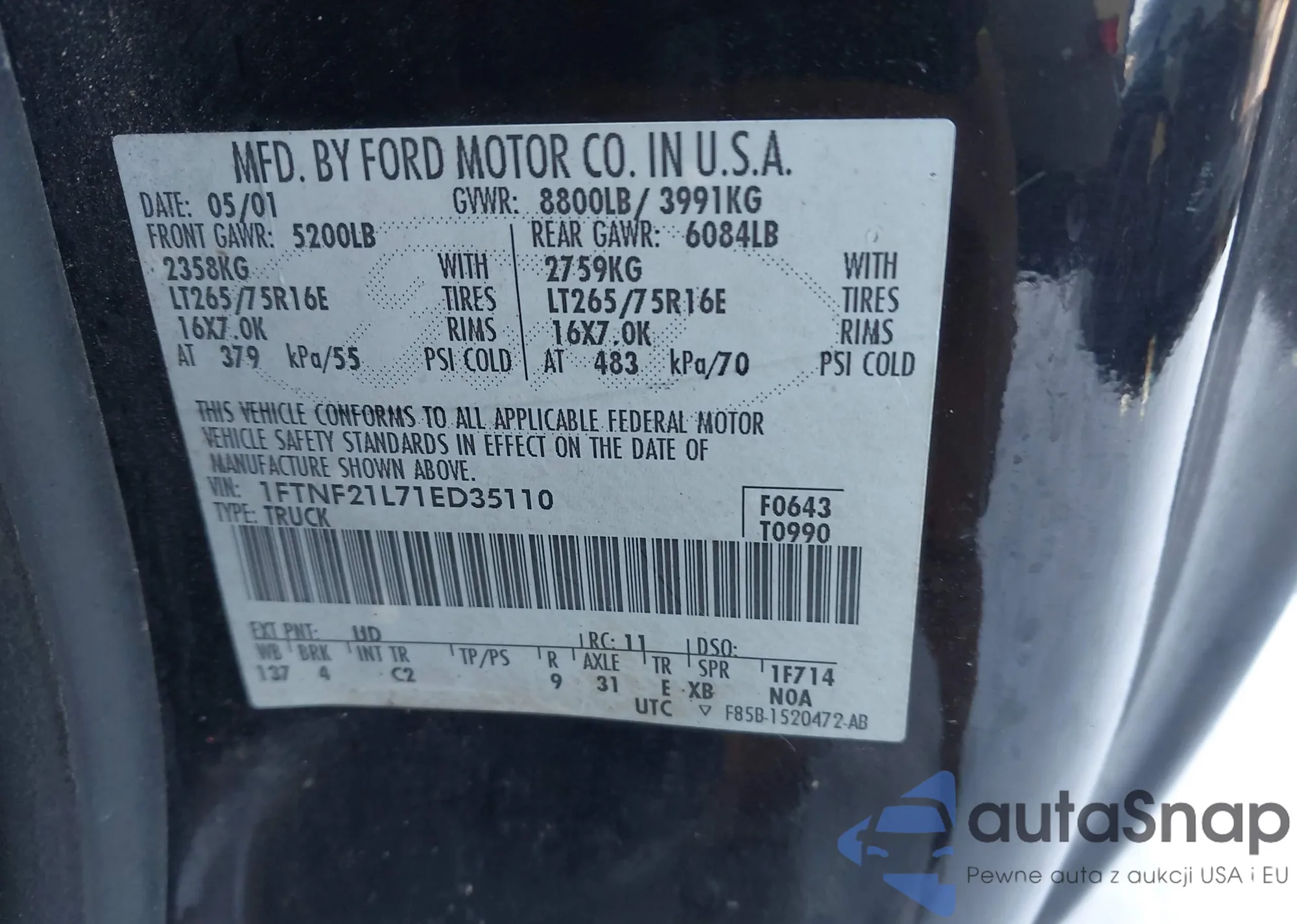 VIN: 1FTNF21L71ED35110