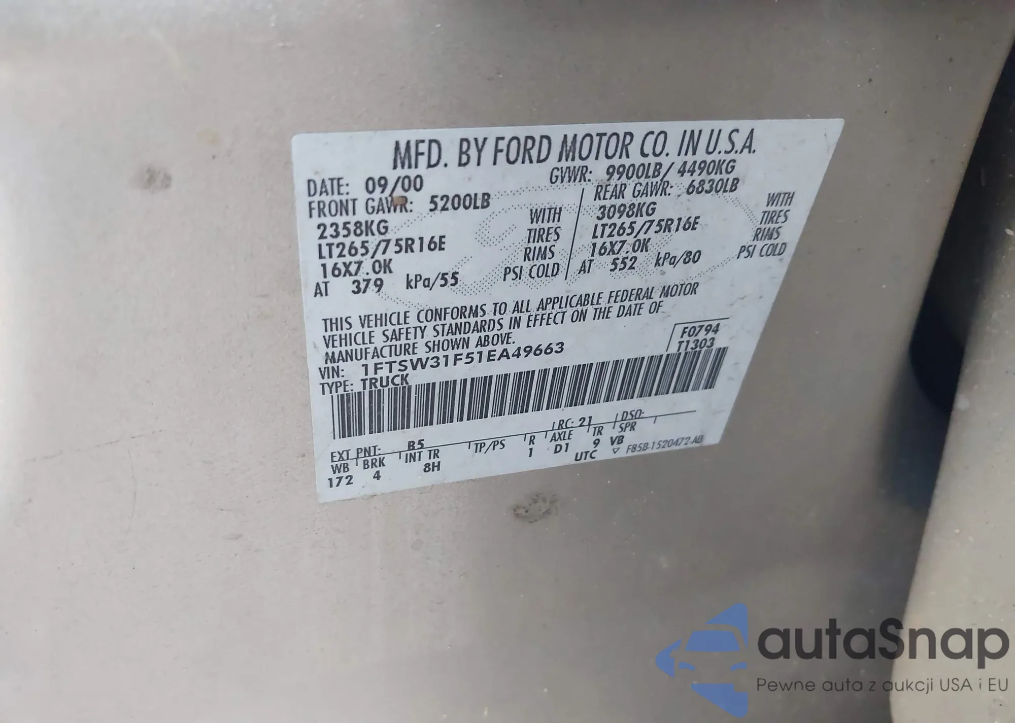 1FTSW31F51EA49663 IAAI