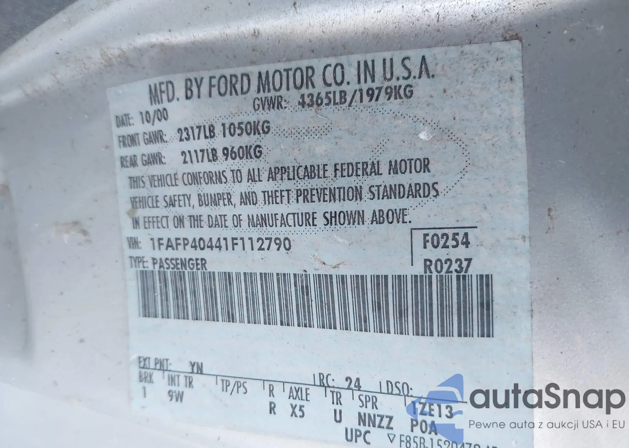 VIN: 1FAFP40441F112790