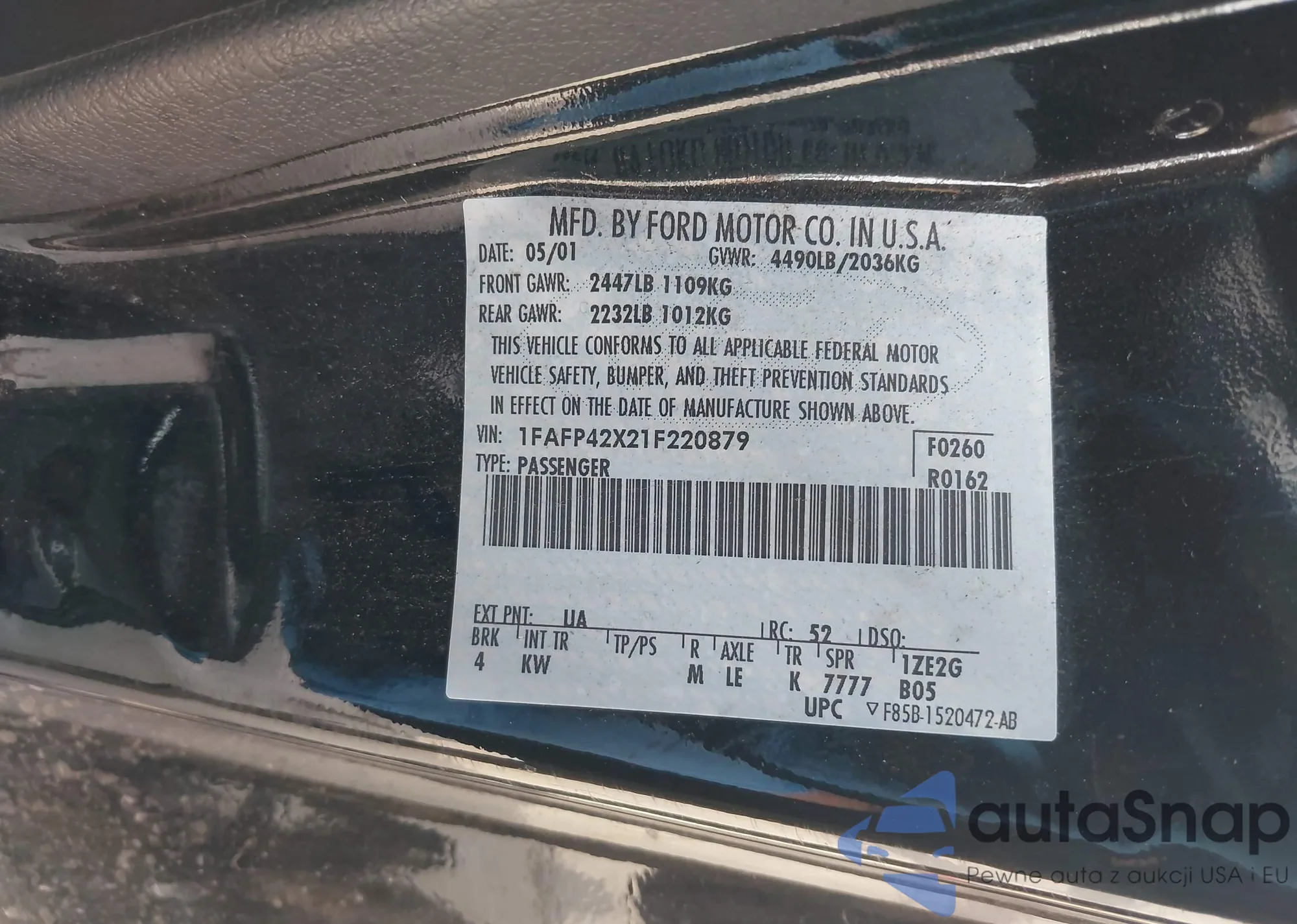 • VIN: 1FAFP42X21F220879