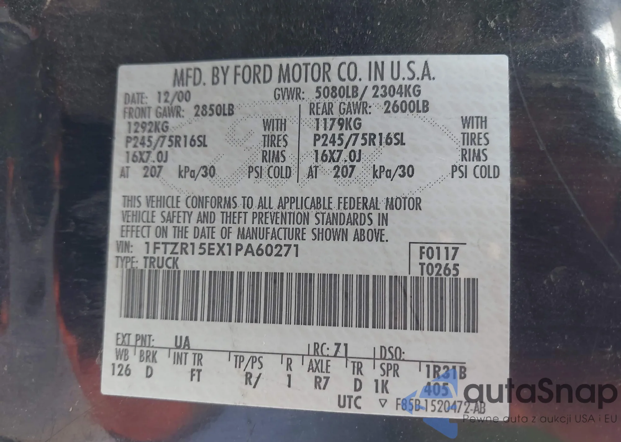 The car Ford Ranger 2001 (VIN 1FTZR15EX1PA60271) has not been auctioned before. The documents are clean, and the mileage matches or is below the market average. Sold by an insurance company – we recommend purchase. Delivery to the port will take approx. 6–8 weeks.