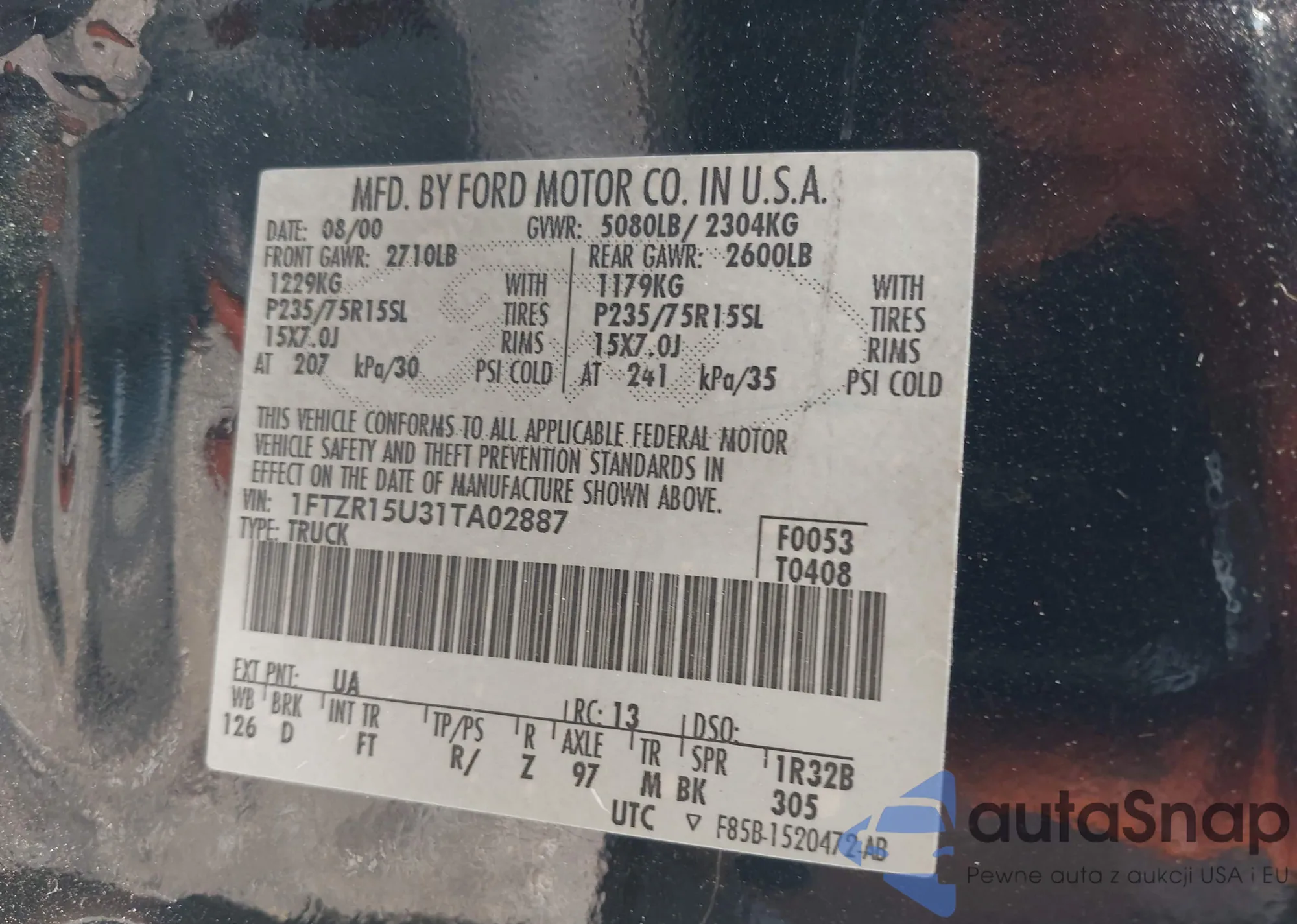 VIN: 1FTZR15U31TA02887
