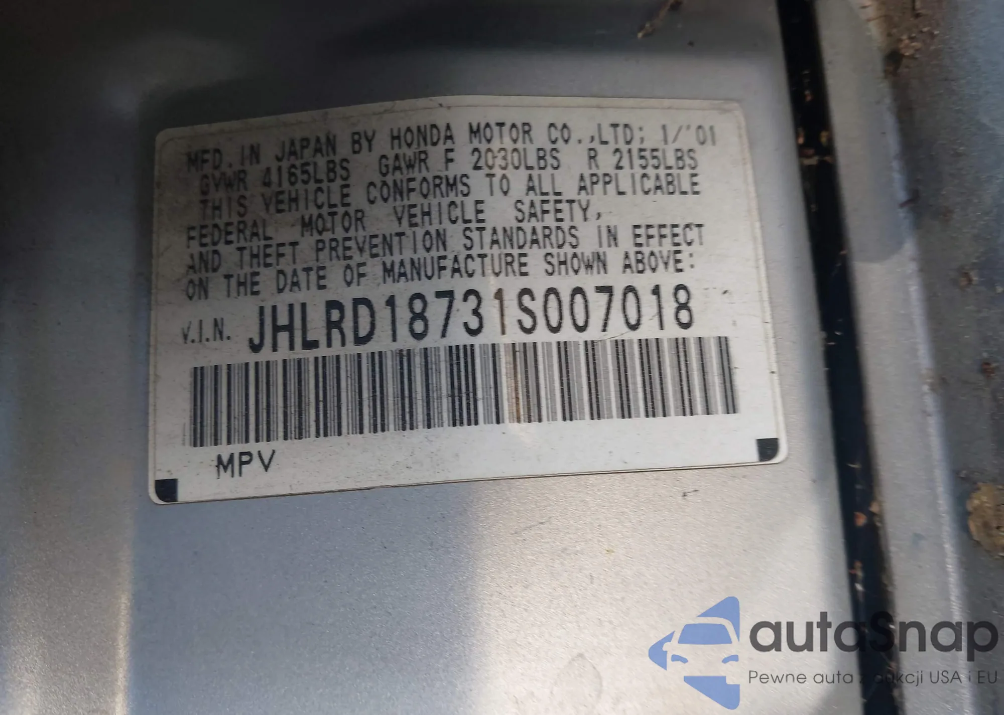 VIN: JHLRD18731S007018