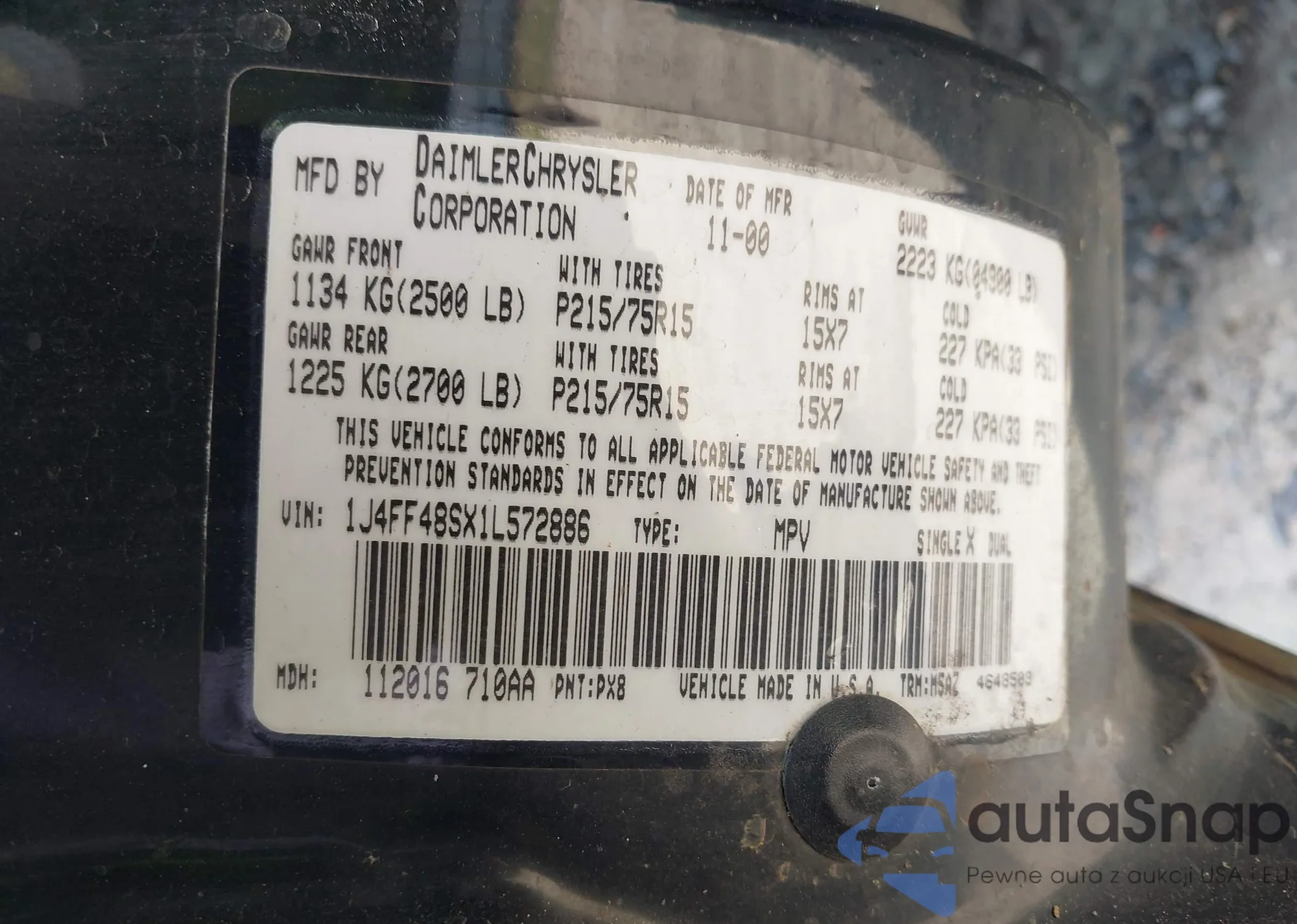 Jeep Cherokee 2001 – Vehicle History (Sold at IAAI)