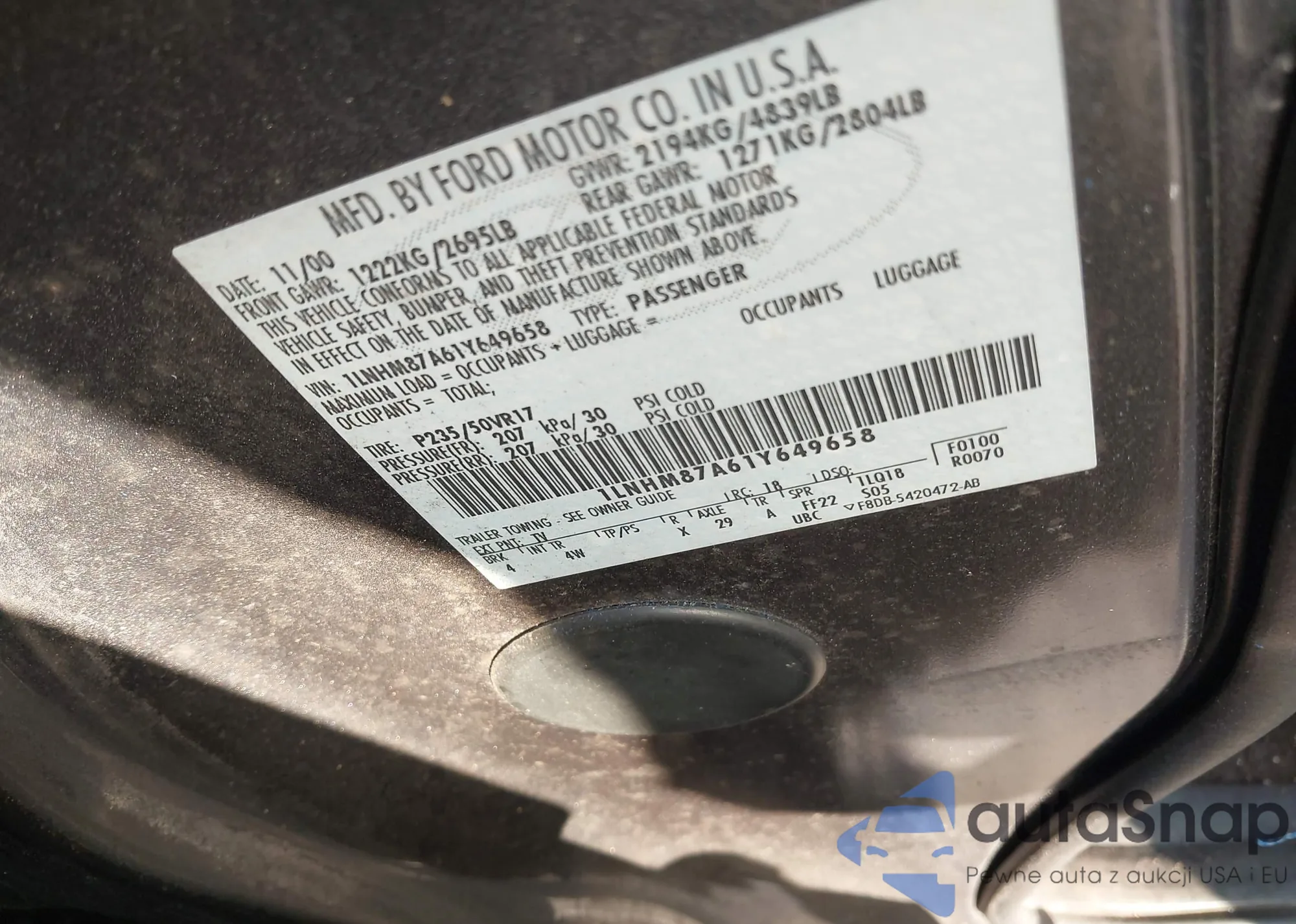 VIN: 1LNHM87A61Y649658