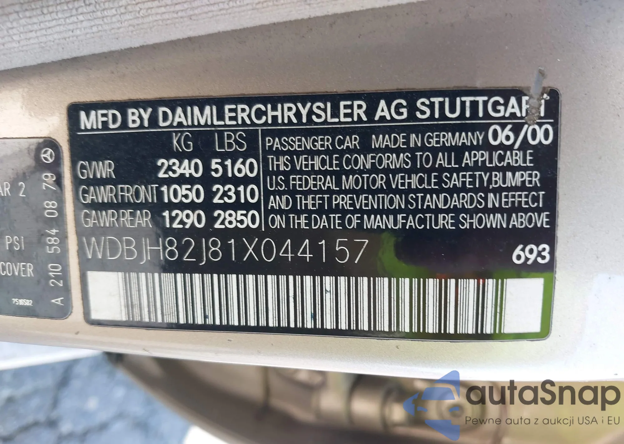 Mercedes-Benz E-klasse 2001 – Vehicle History (Sold at IAAI)