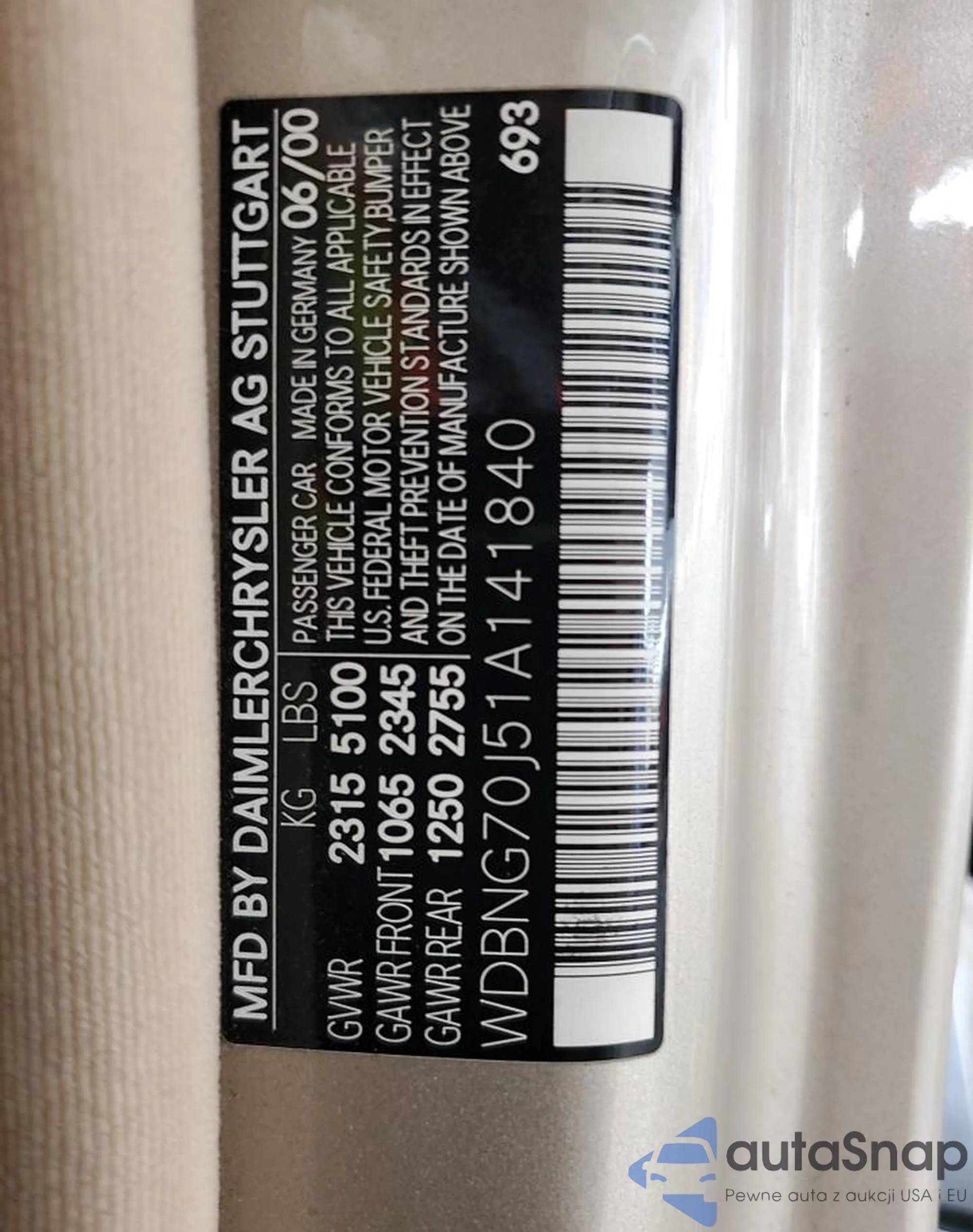 The car Mercedes-Benz S-klasse 2001 (VIN WDBNG70J51A141840) has not been auctioned before. The documents are clean, and the mileage matches or is below the market average. Sold by an insurance company – we recommend purchase. Delivery to the port will take approx. 6–8 weeks.