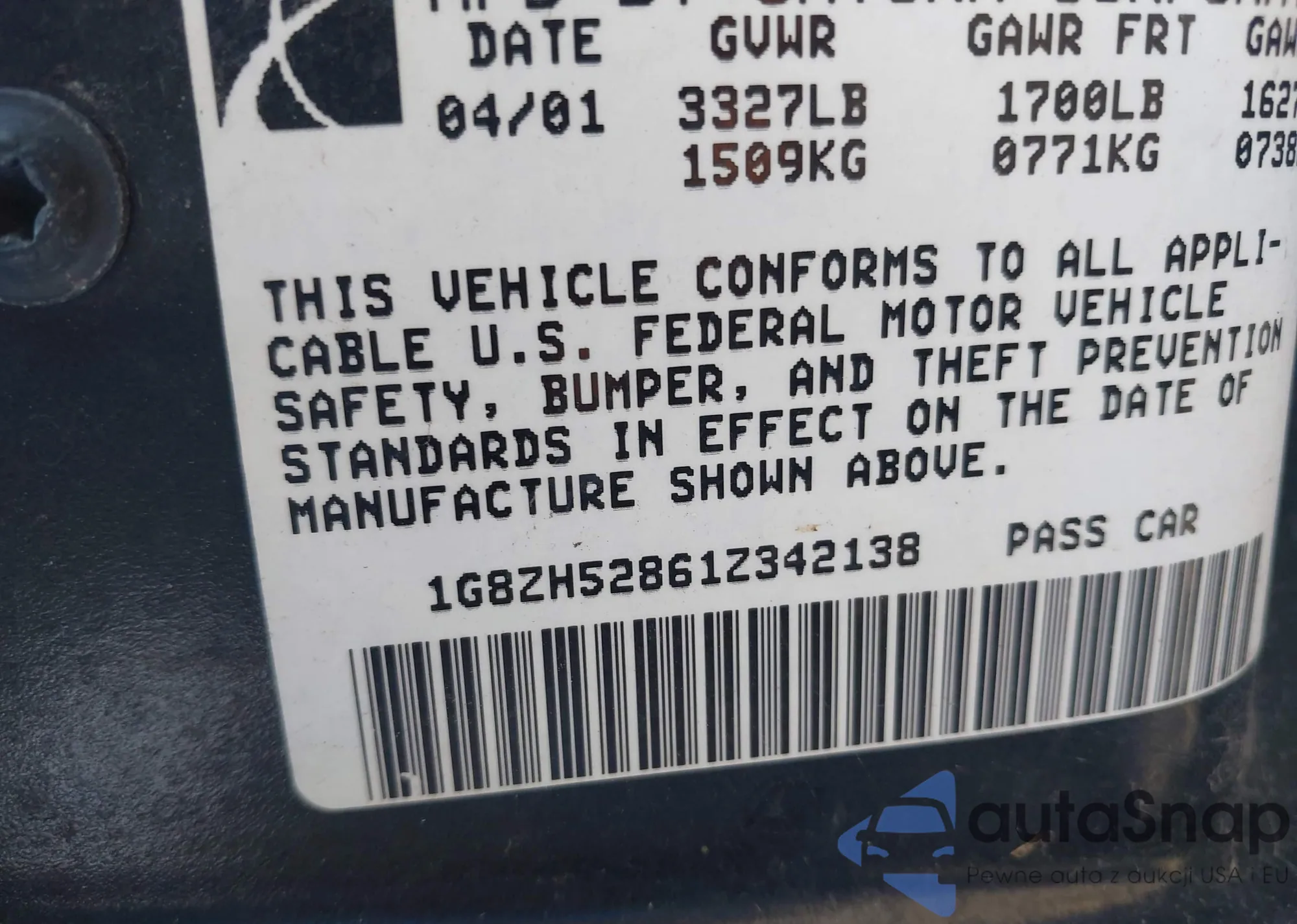 VIN: 1G8ZH52861Z342138