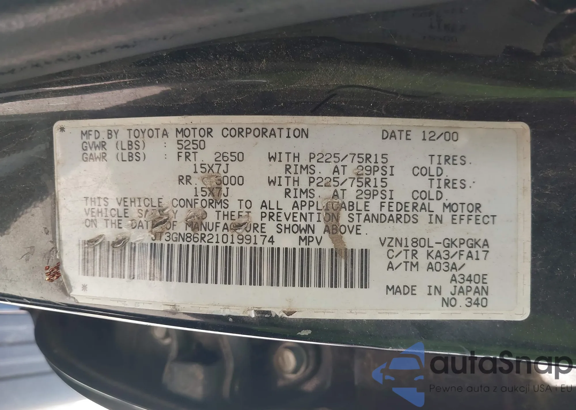 VIN: JT3GN86R210199174