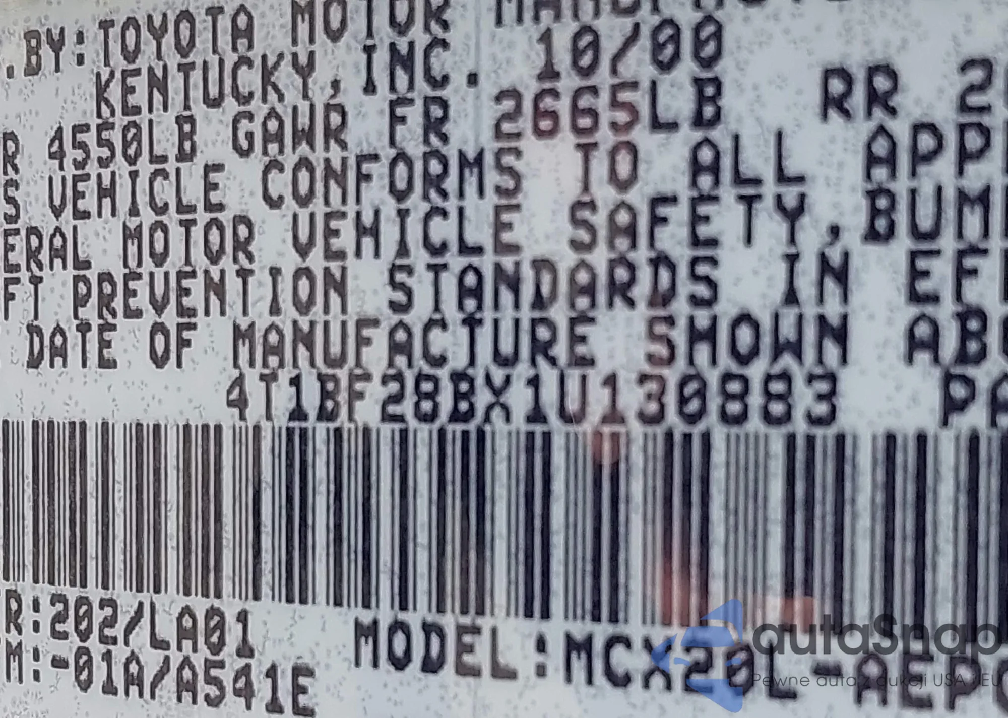 VIN: 4T1BF28BX1U130883