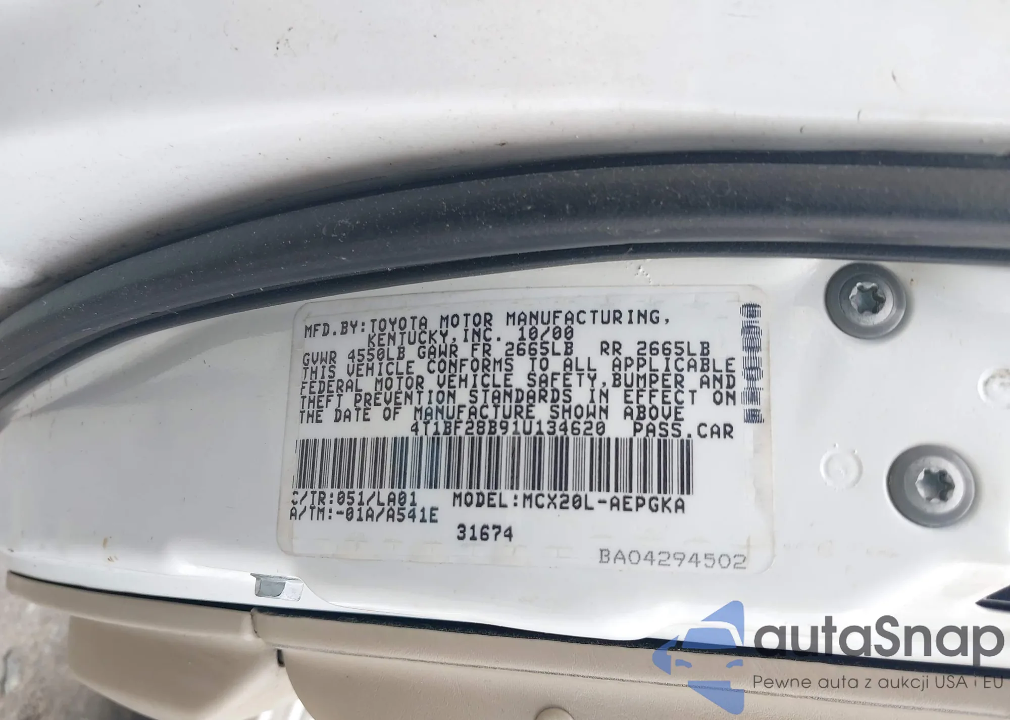 VIN: 4T1BF28B91U134620