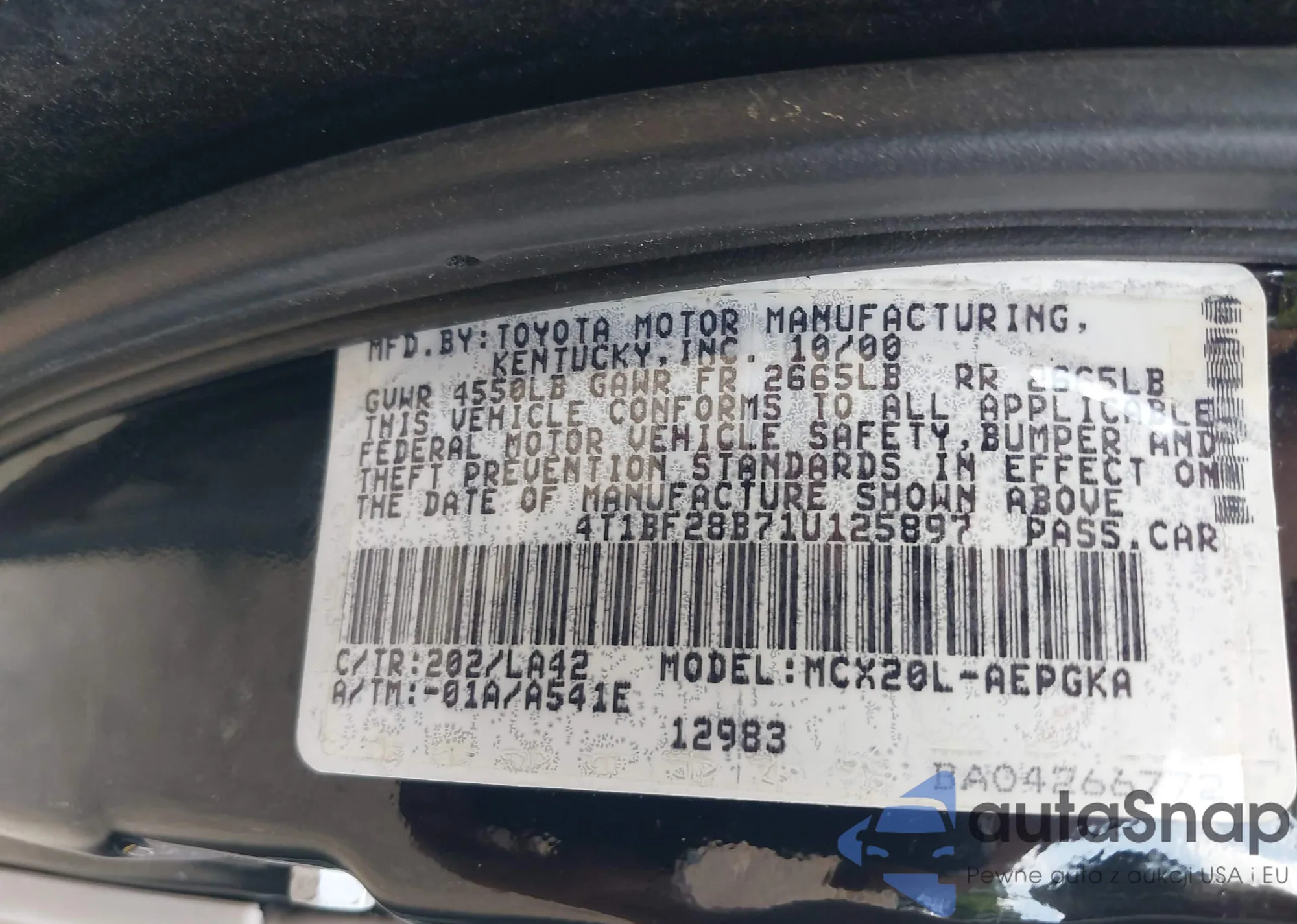 VIN: 4T1BF28B71U125897