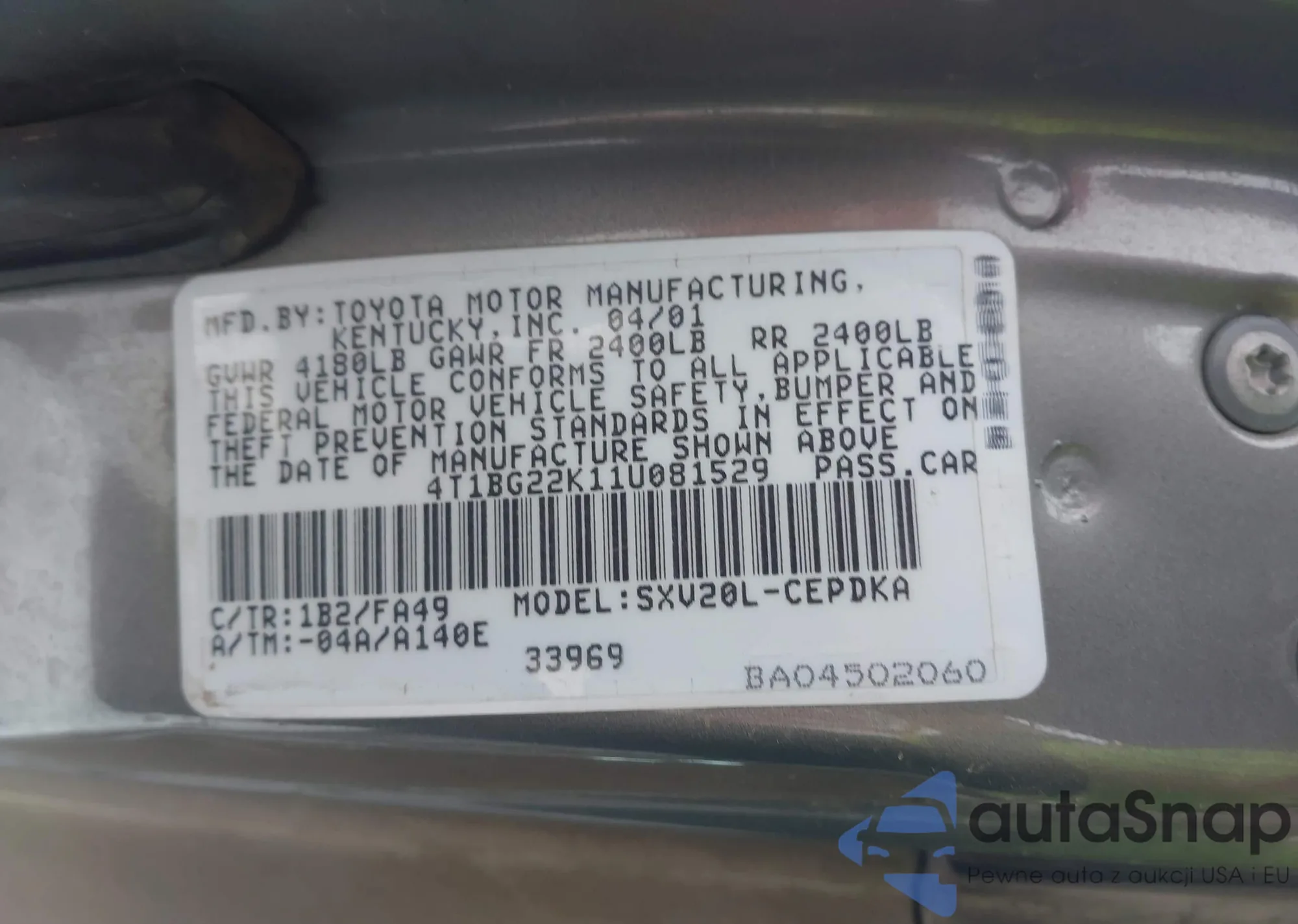 VIN: 4T1BG22K11U081529