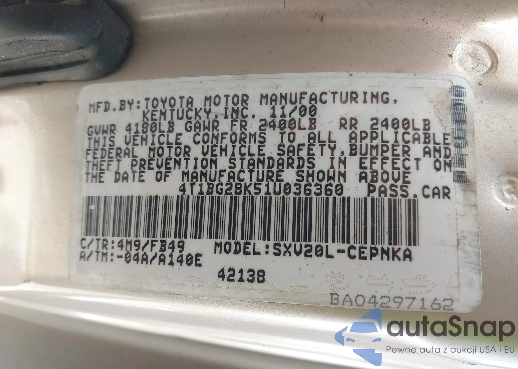 VIN: 4T1BG28K51U036360