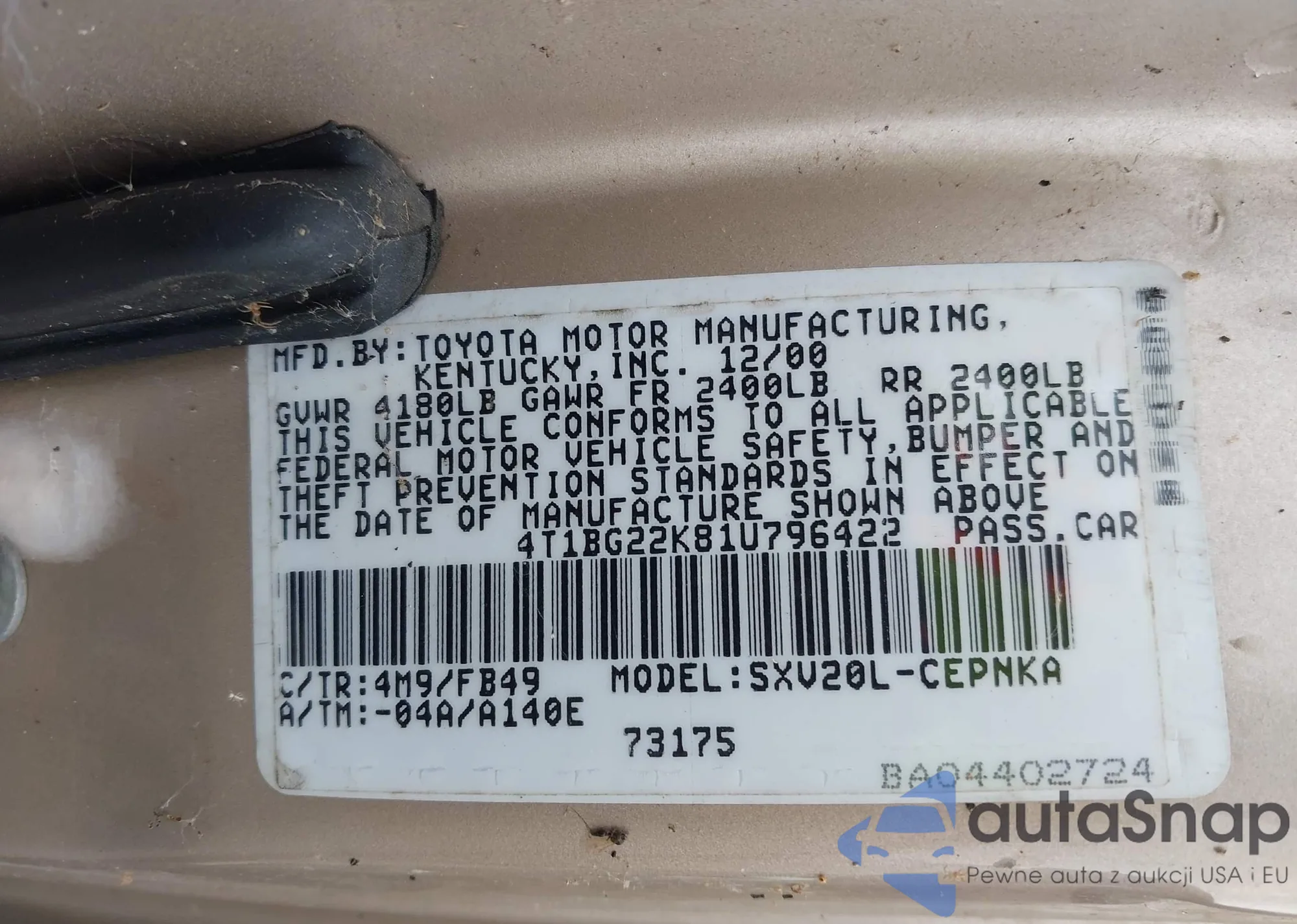VIN: 4T1BG22K81U796422