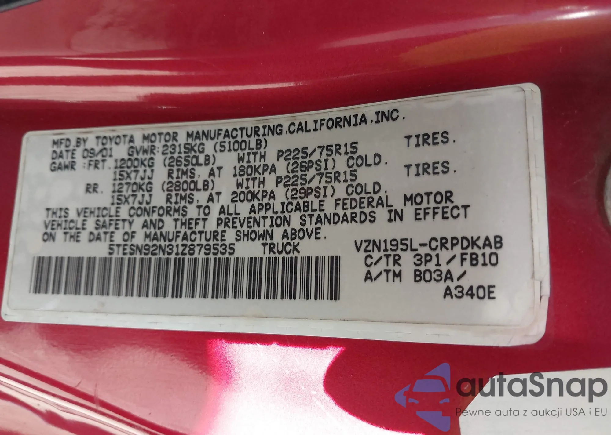 • VIN: 5TESN92N31Z879535