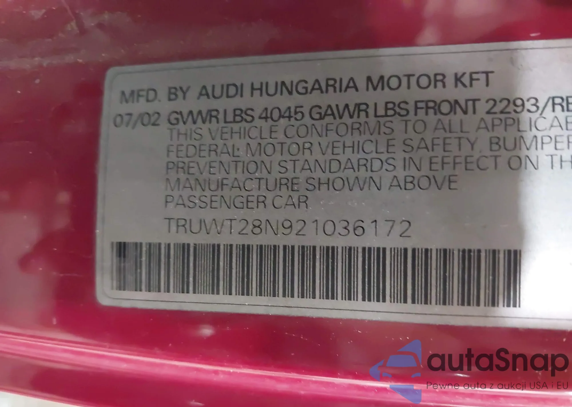 VIN: TRUWT28N921036172