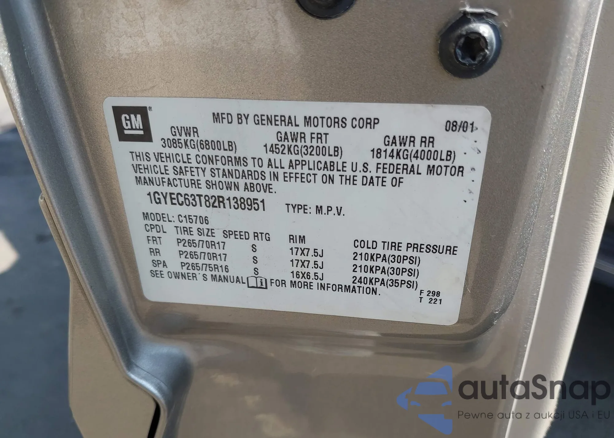VIN: 1GYEC63T82R138951