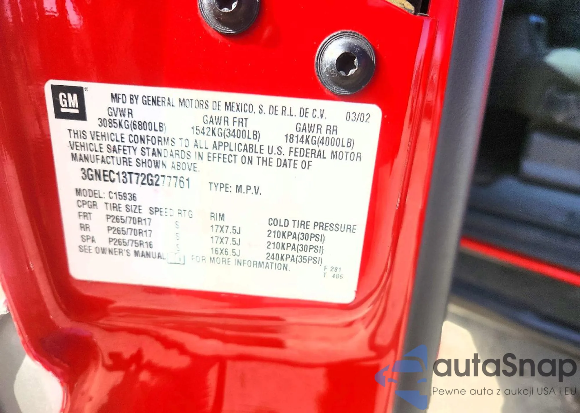 The car Chevrolet Avalanche 2002 (VIN 3GNEC13T72G277761) is sold by an unverified seller. We recommend checking the Carfax report and confirming registration possibilities before purchase.