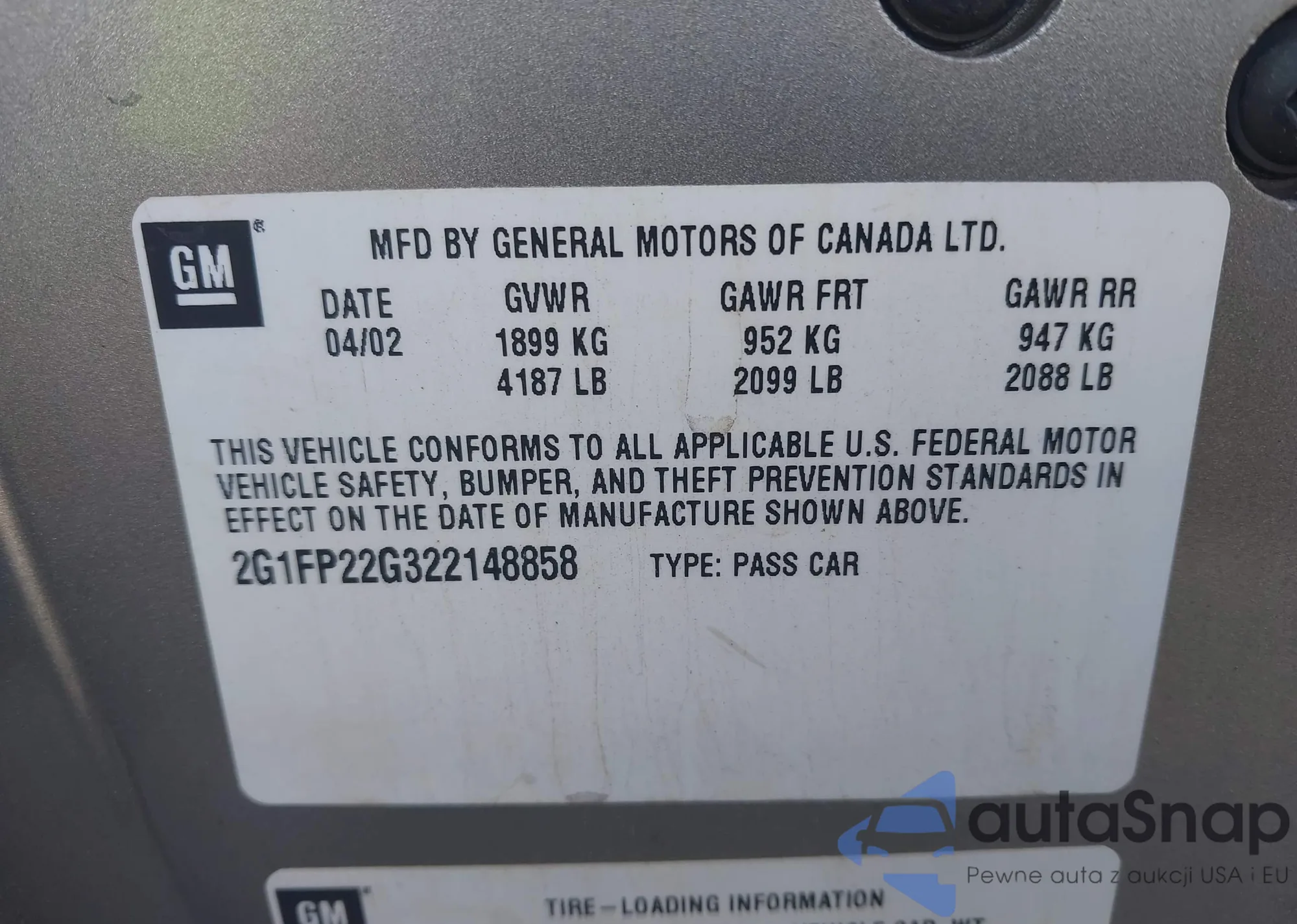 The car Chevrolet Camaro 2002 (VIN 2G1FP22G322148858) is sold by an unverified seller. We recommend checking the Carfax report and confirming registration possibilities before purchase.