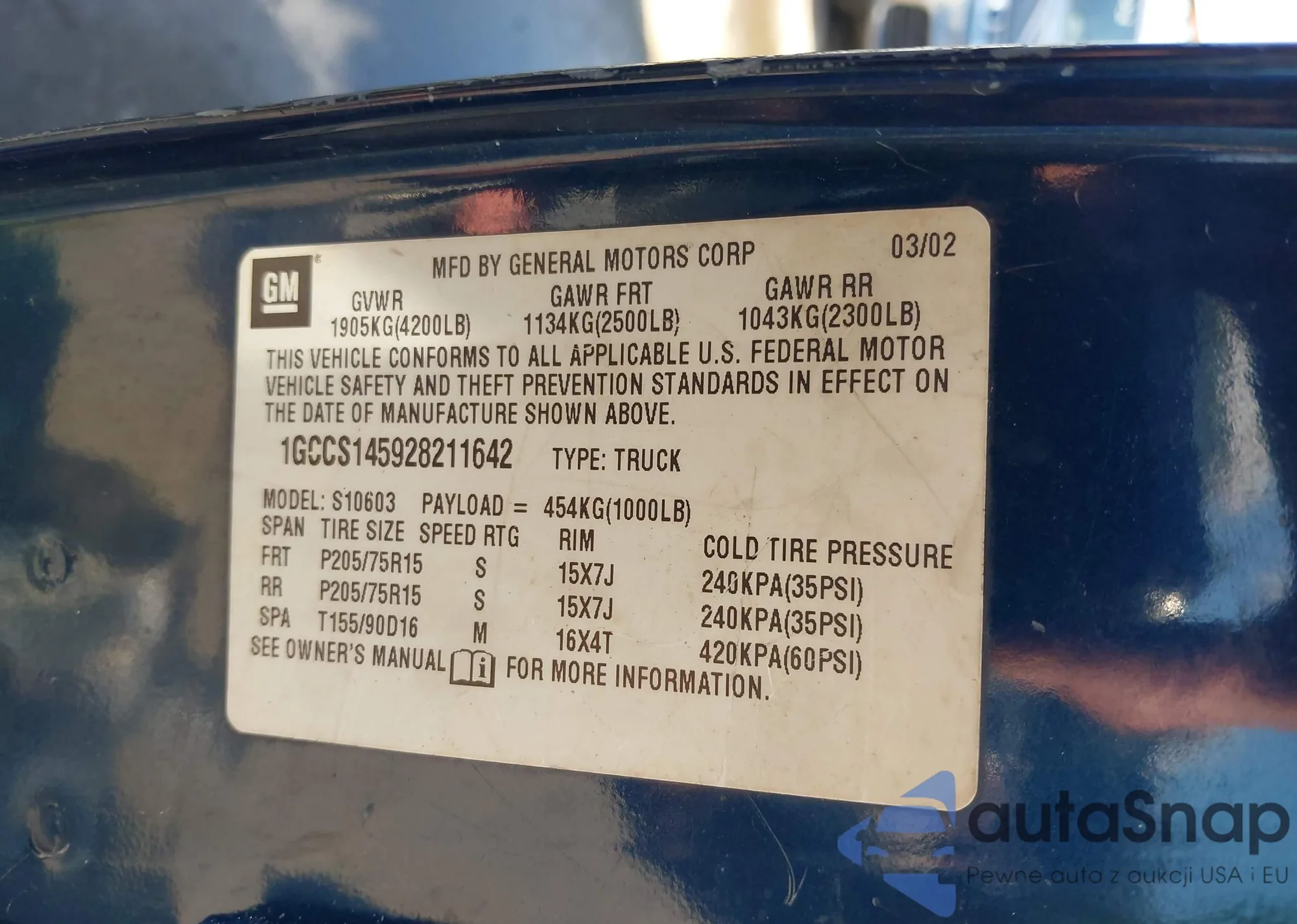 VIN: 1GCCS145928211642