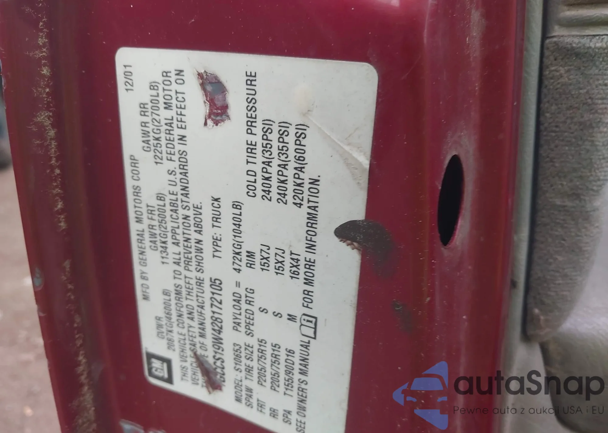 VIN: 1GCCS19W428172105