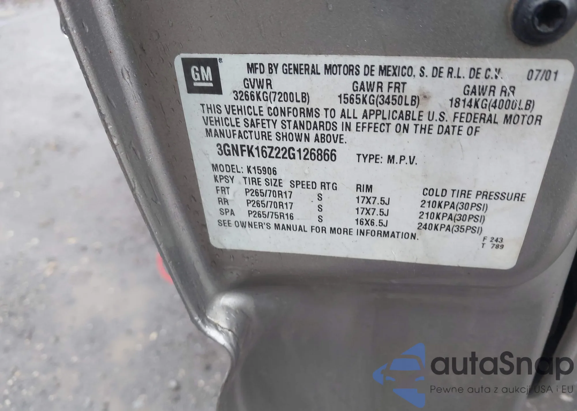 VIN: 3GNFK16Z22G126866