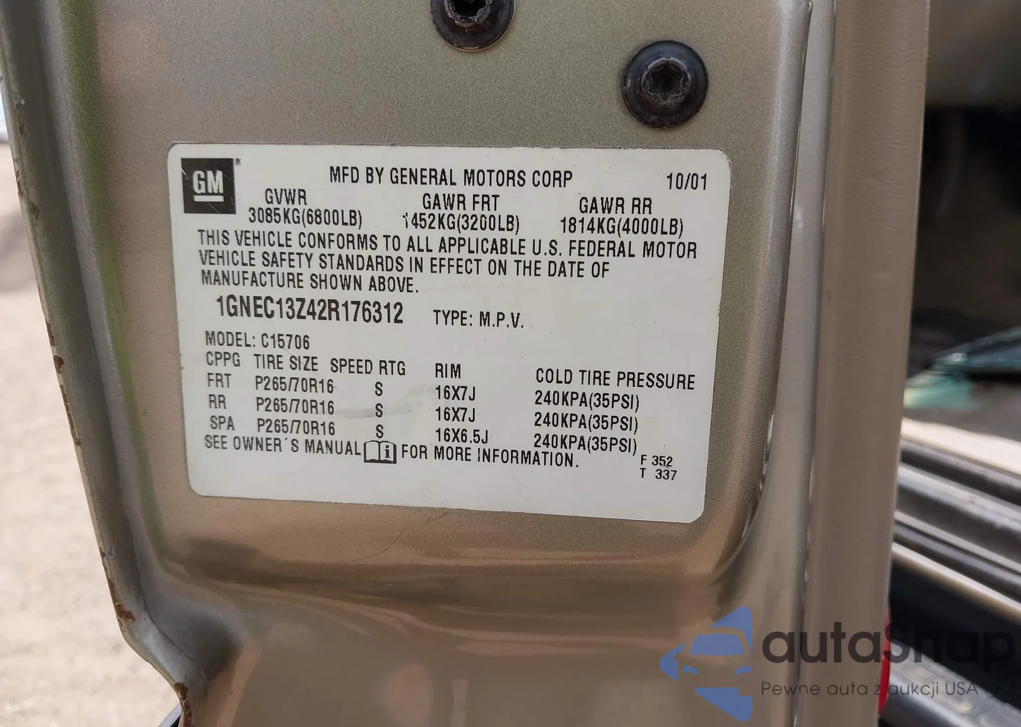 • VIN: 1GNEC13Z42R176312
