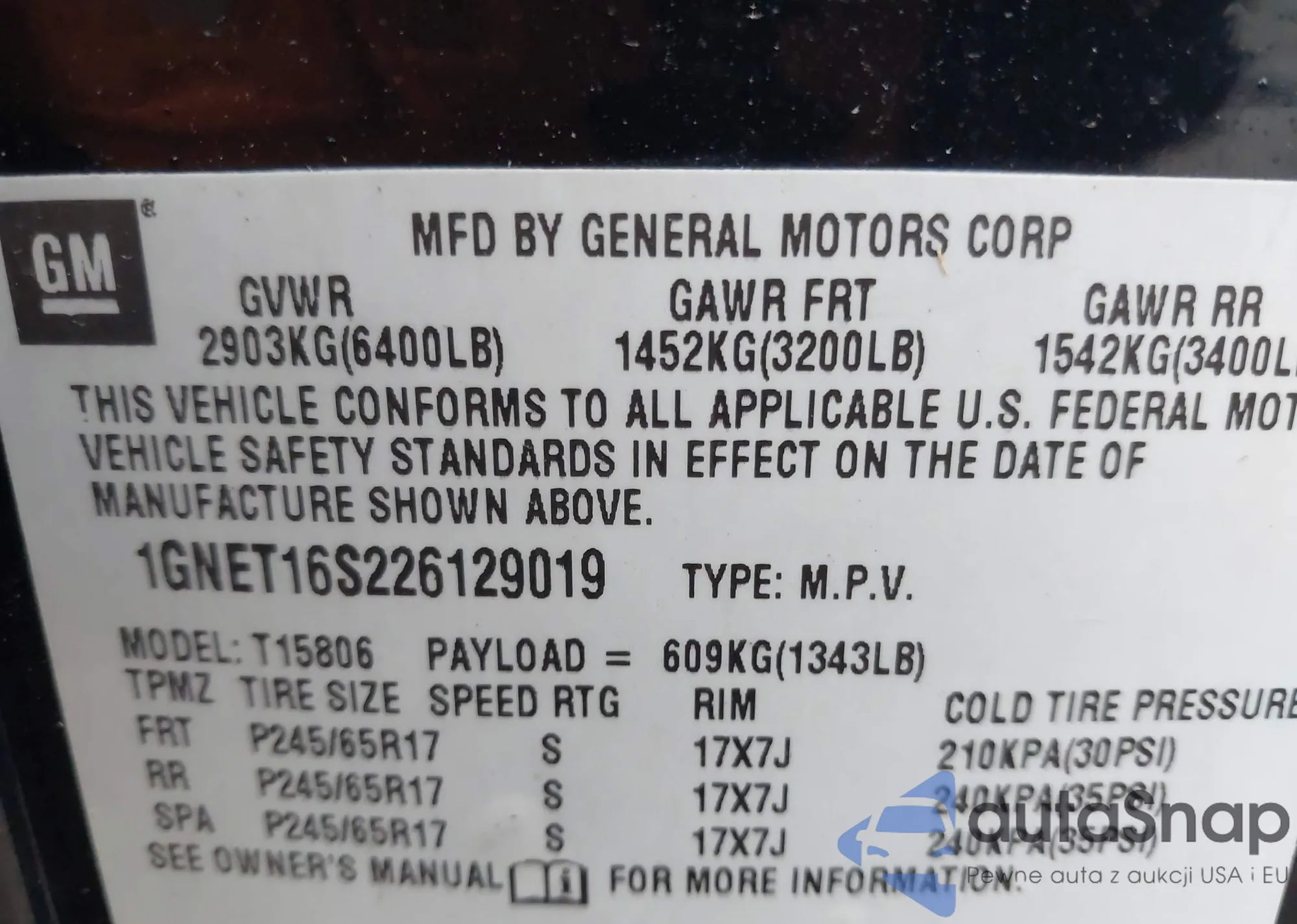 VIN: 1GNET16S226129019