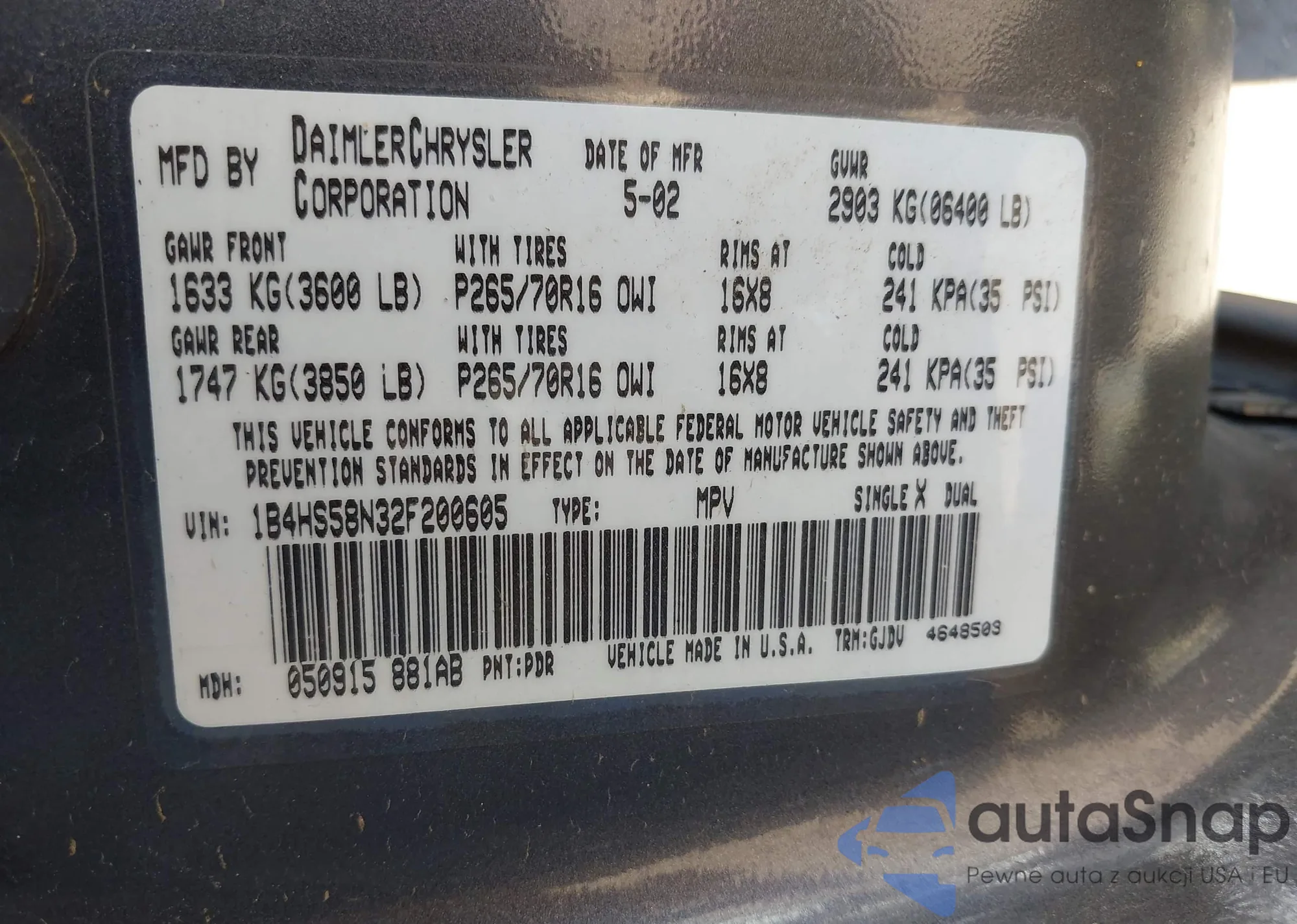 VIN: 1B4HS58N32F200605