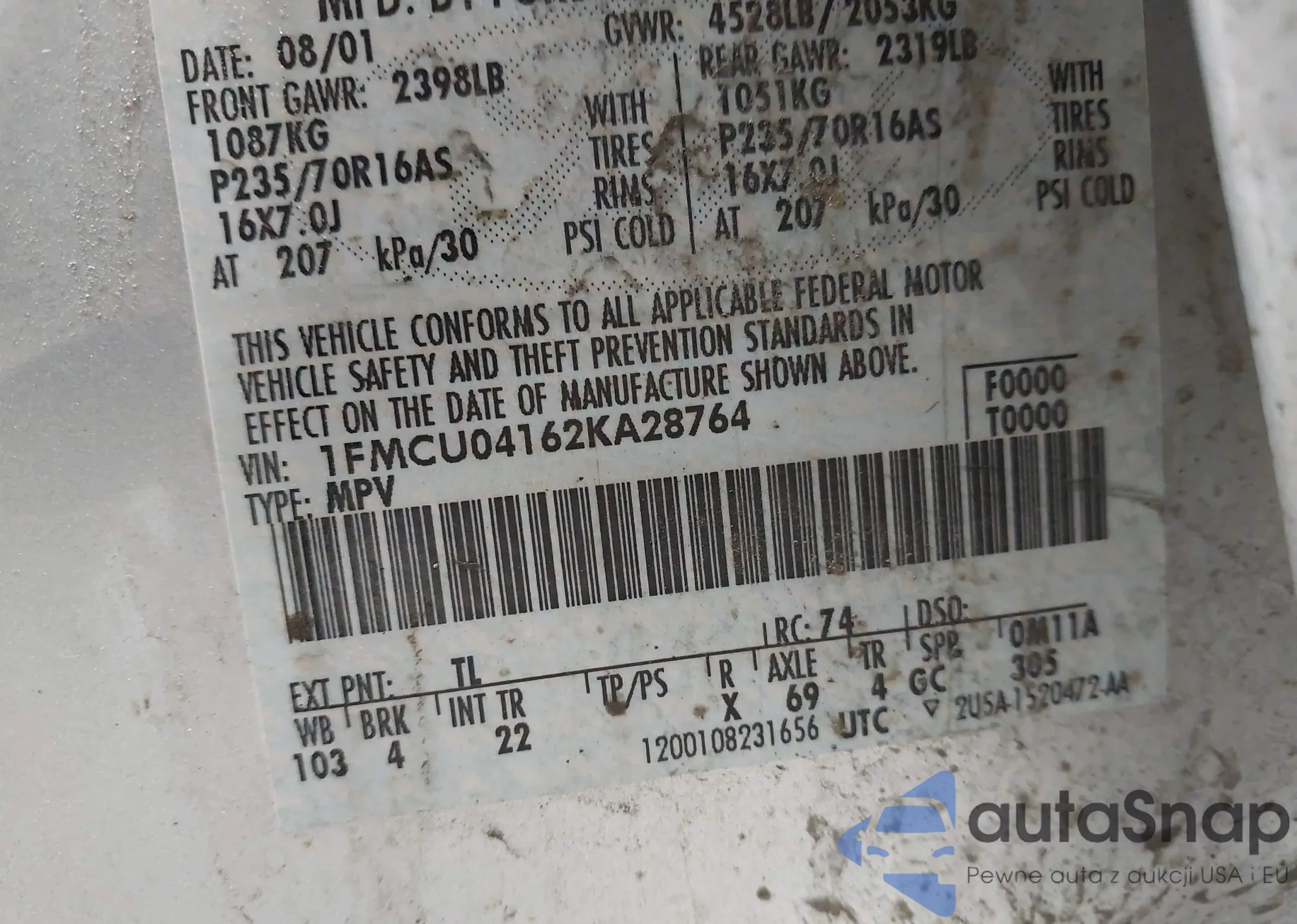 • VIN: 1FMCU04162KA28764