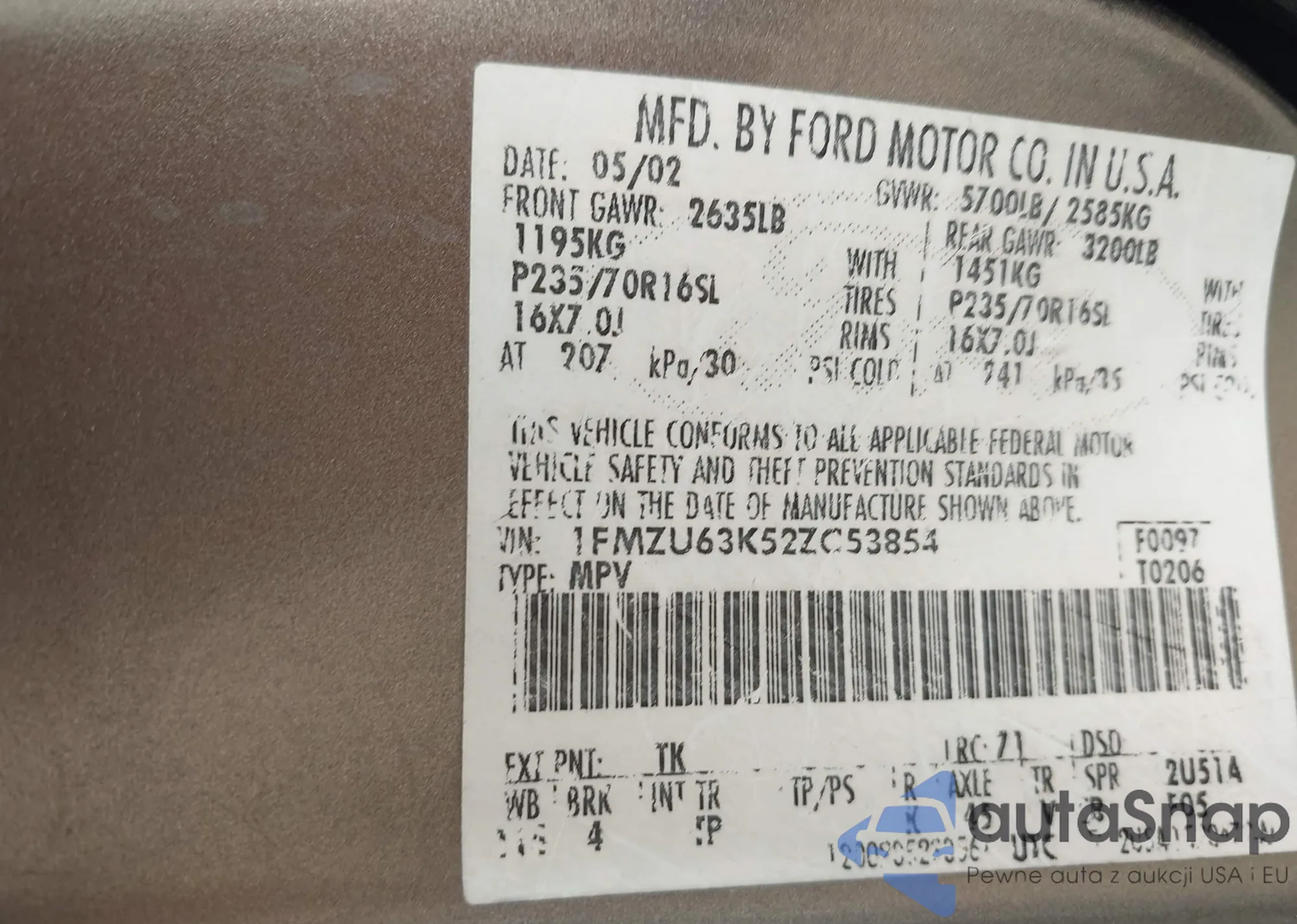VIN: 1FMZU63K52ZC53854