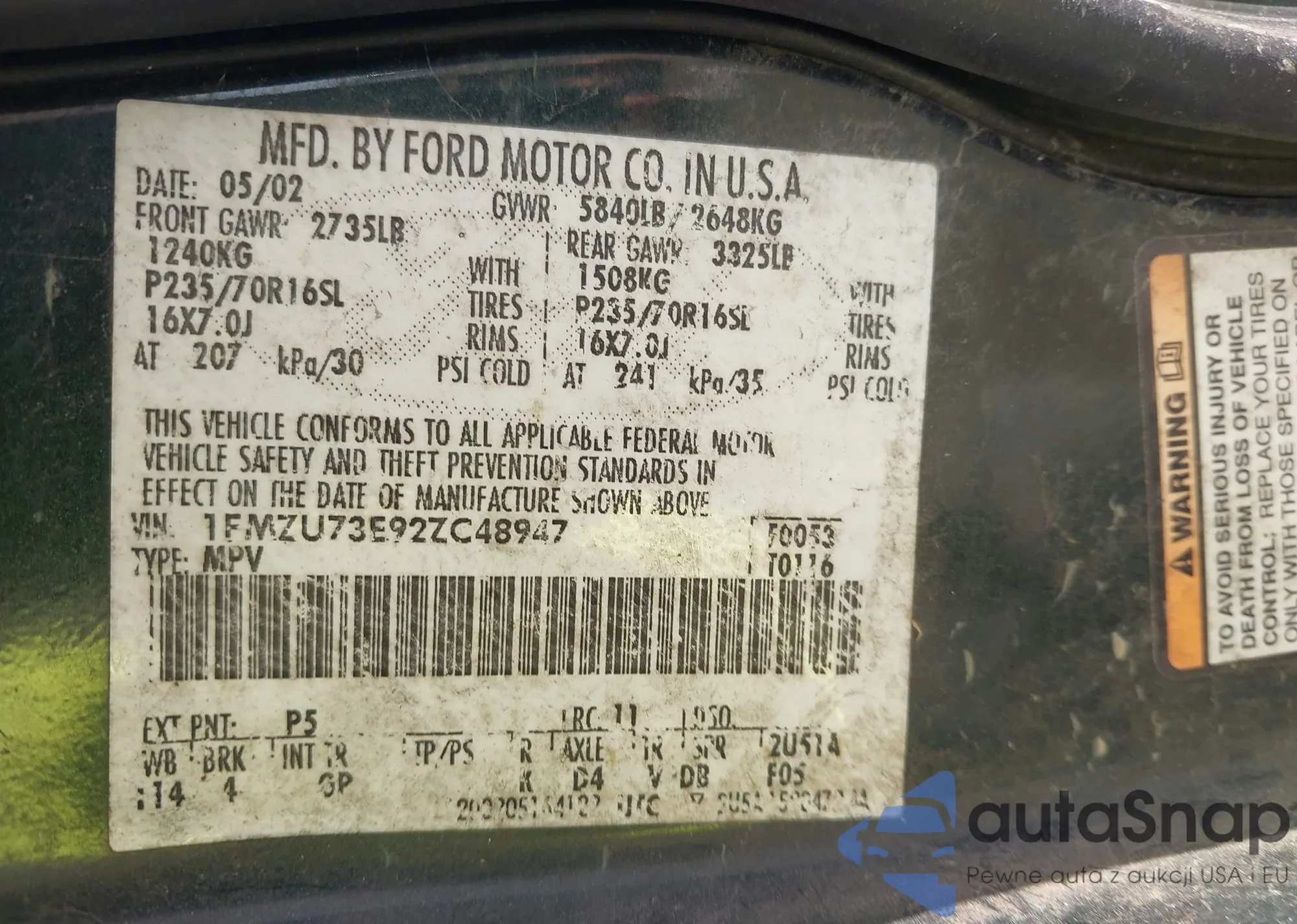 VIN: 1FMZU73E92ZC48947