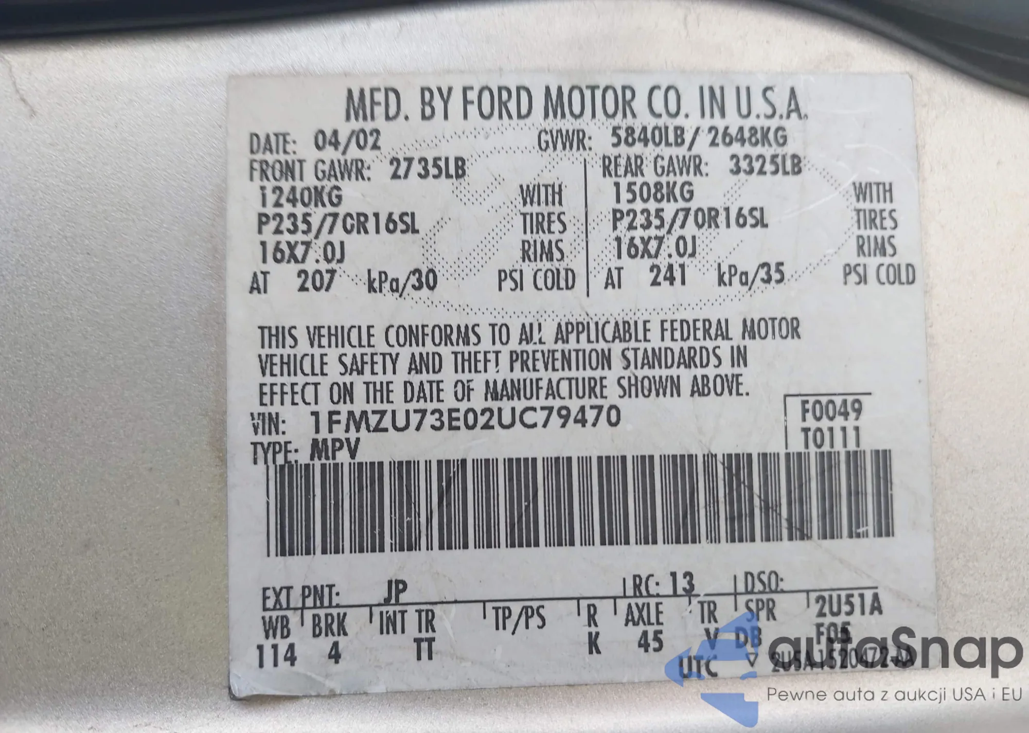 VIN: 1FMZU73E02UC79470