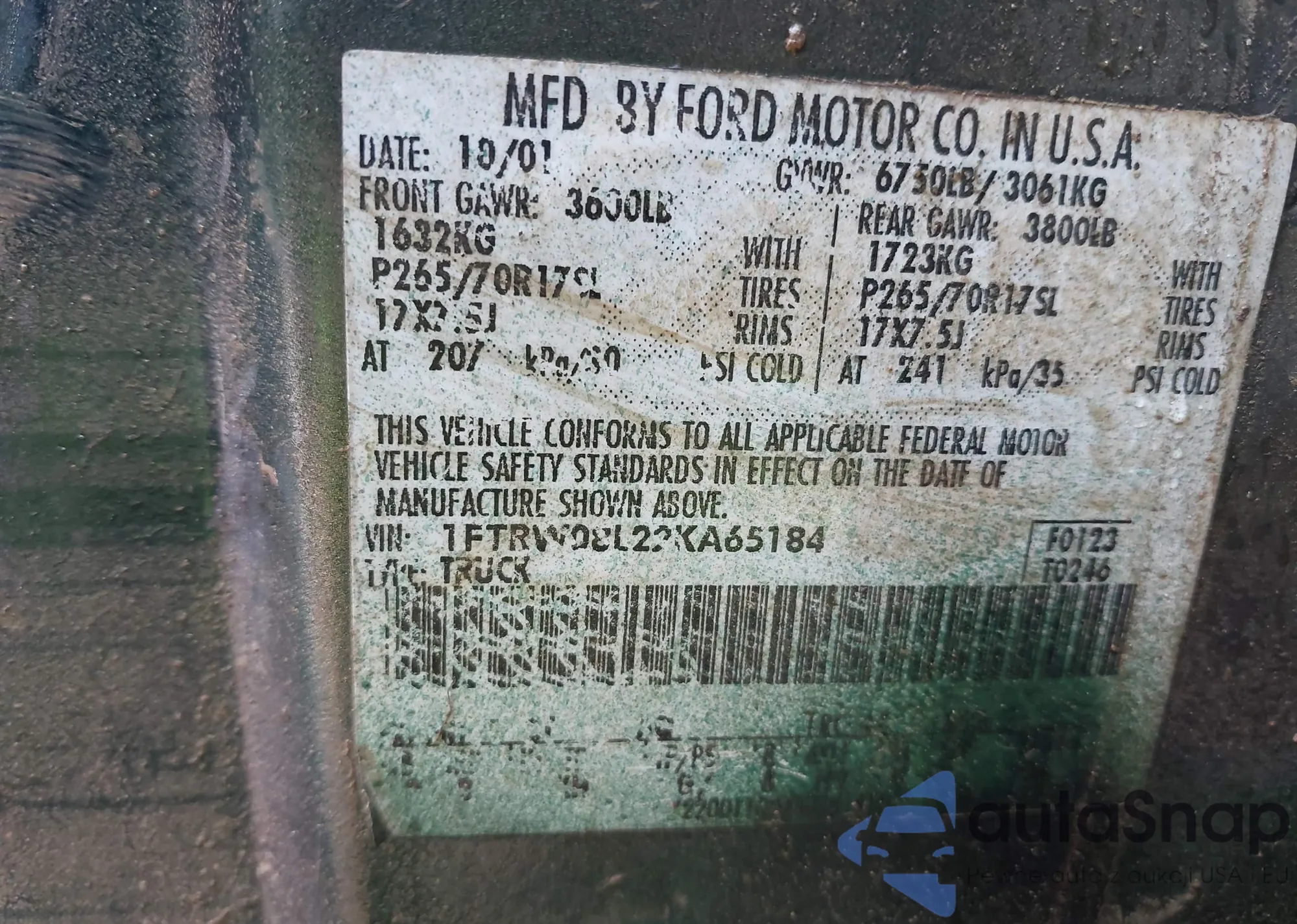 VIN: 1FTRW08L22KA65184