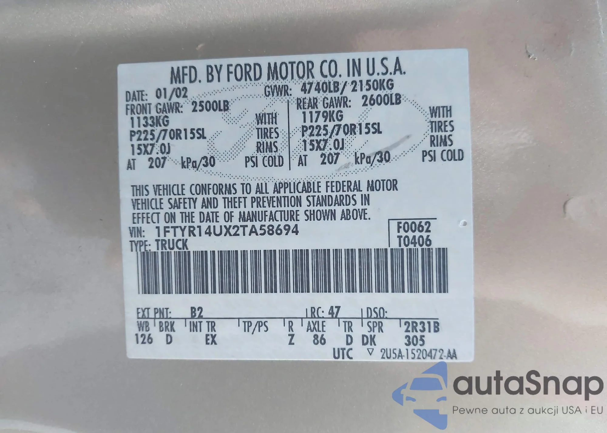 VIN: 1FTYR14UX2TA58694