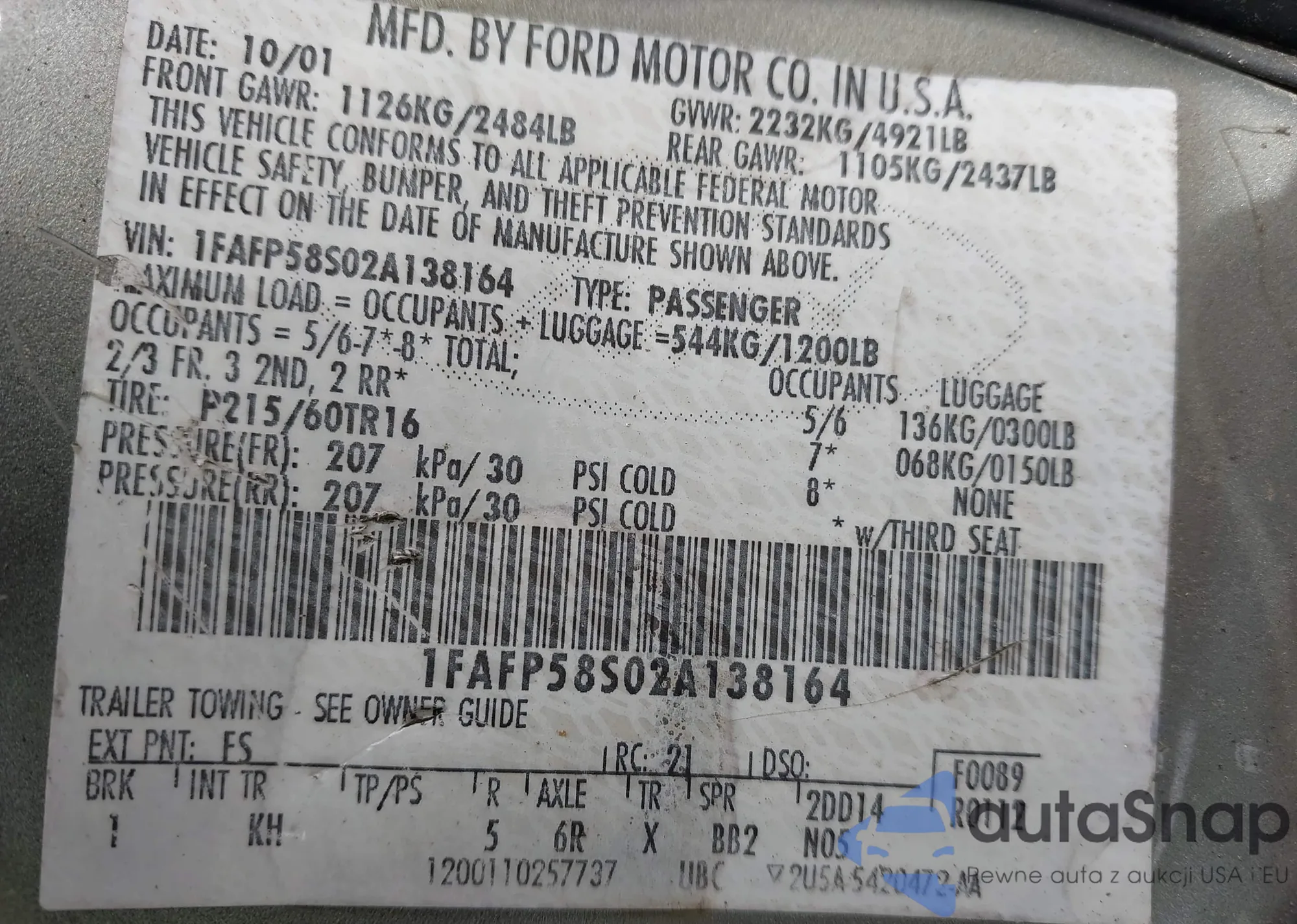 VIN: 1FAFP58S02A138164
